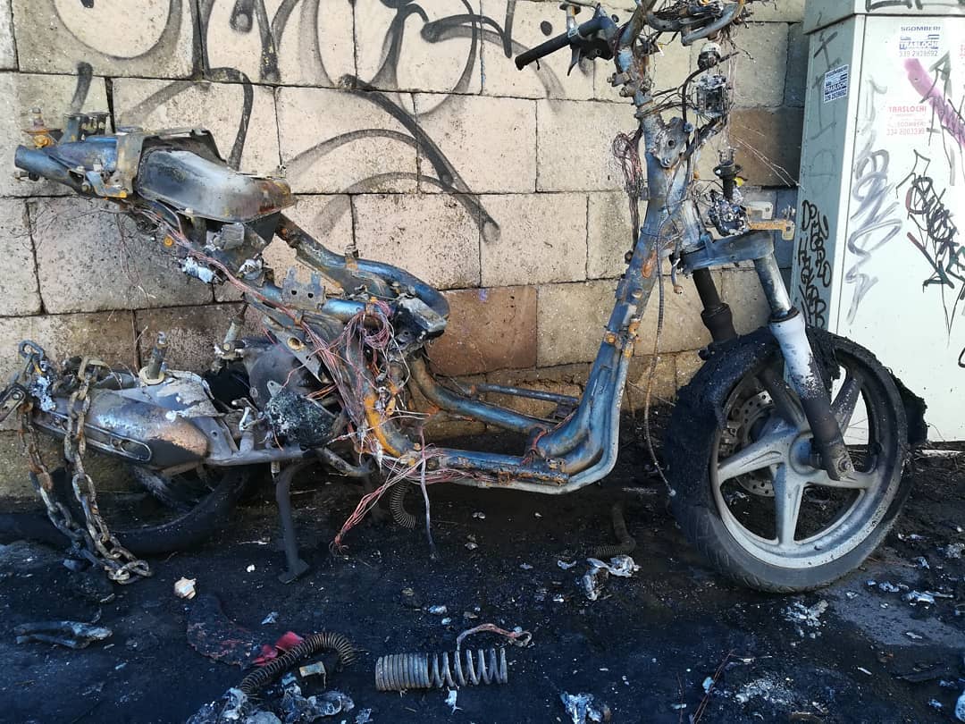 “Questa notte il mio scooter, l’unico mezzo di trasporto a mia disposizione, è stato dato alle fiamme. A tarda notte e nei pressi della mia abitazione”.