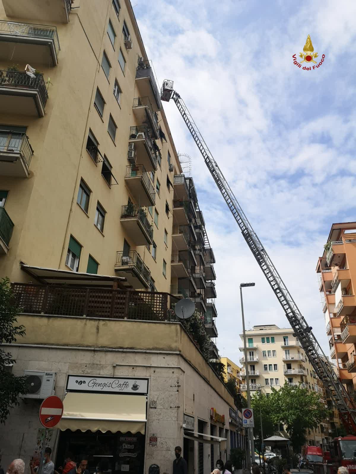 In Via A. Rendano 41, nel quartiere Africano, sono prontamente intervenute le squadre di Nomentano (6/A) e Centrale(1/A) con l’ausilio di una botte (AB/9), dell’autoscala (AS/6), e del carro autoprotettori (TA/6) dei Vigili del Fuoco a causa di un incendio scoppiato in un appartamento ubicato al sesto piano di una palazzina. Fortunatamente nessuna persona è rimasta ferita, tuttavia, non sono mancati i disagi causati dal denso fumo sprigionato dalla combustione che ha invaso le scale condominiali: sembrerebbe che una persona sia stata portata via in ambulanza probabilmente per aver inalato del fumo. Domate le fiamme, l’appartamento è stato dichiarato inagibile. Sul posto presenti anche diverse ambulanze, personale della polizia di stato, personale di Roma capitale e i tecnici di Italgas.