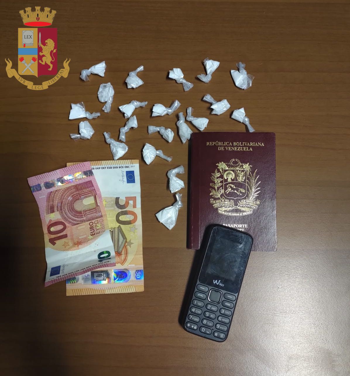 Gli agenti del commissariato Esquilino unitamente a quelli del commissariato Viminale hanno arrestato I.D. ivoriano di 25 anni per droga. Durante il regolare servizio di controllo del territorio i poliziotti hanno notato il ragazzo aggirarsi con fare sospetto; intuizione giusta da parte degli investigatori visto che quest’ultimo celava all’interno della manica destra del giubbotto 10 involucri di cocaina dal peso complessivo di 2,78 grammi più 55 euro in contanti.