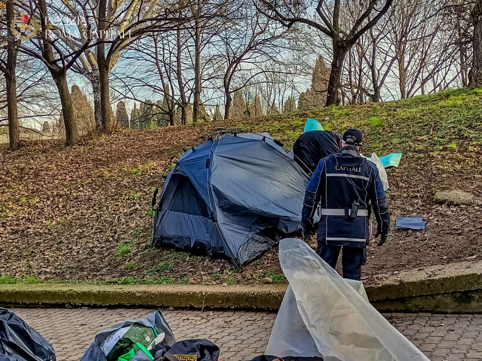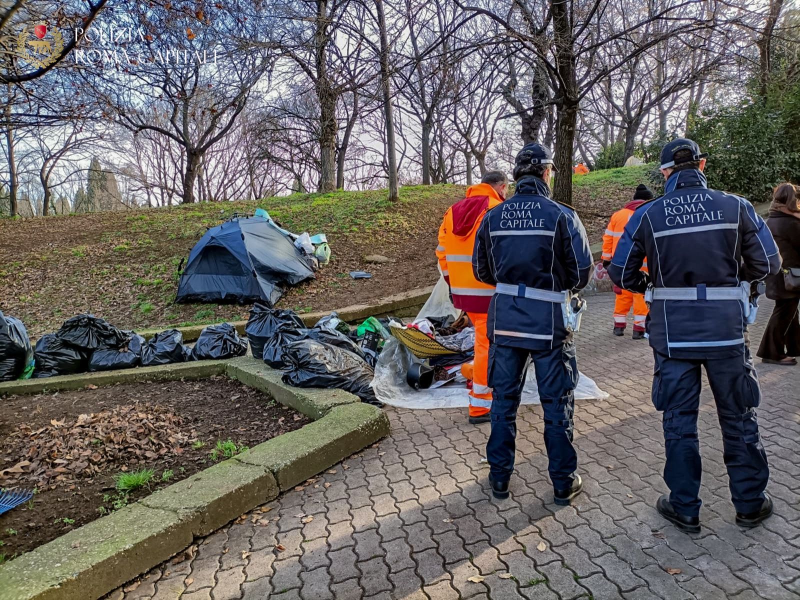 A presiedere le operazioni, la Polizia Locale di Roma Capitale del II Gruppo Parioli e Sapienza, insieme ad alcuni operatori Ama. Grazie agli operatori e mezzi Ama è stato possibile procedere alla pulizia delle aree interessate, con la rimozione di una grande quantità di rifiuti e giacigli vari.