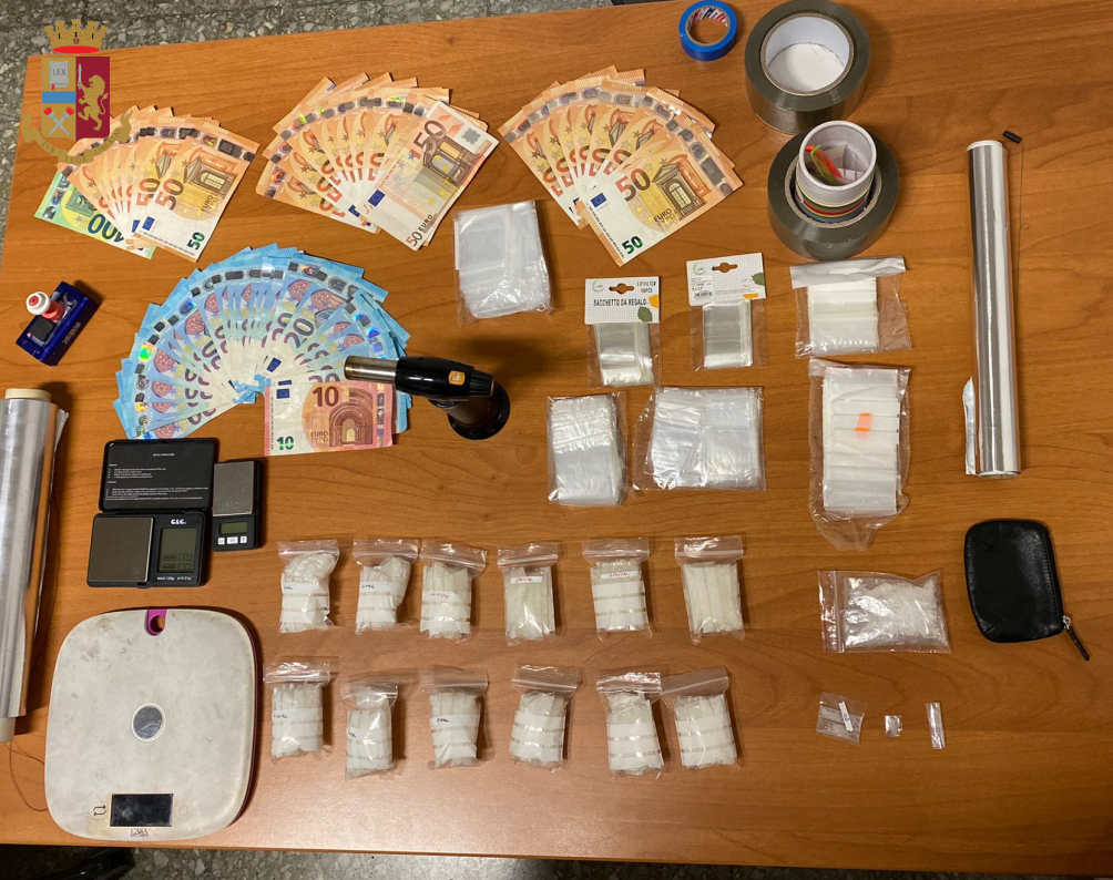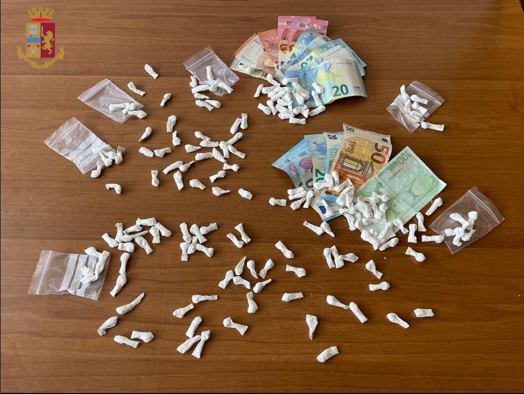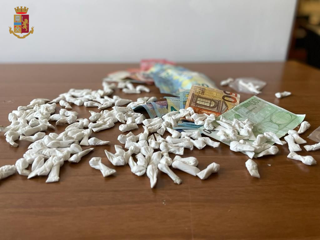La perquisizione effettuata sul posto dagli agenti ha permesso di rinvenire e sequestrare nei pressi del cassonetto 170 involucri di cocaina per un totale di 82 grammi. Su di lui sono stati rinvenuti 420 euro in banconote di diverso taglio, nonché un foglio con su scritta l’attività di spaccio con nomi e cifre.