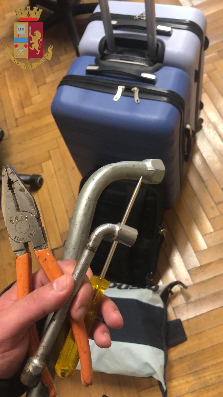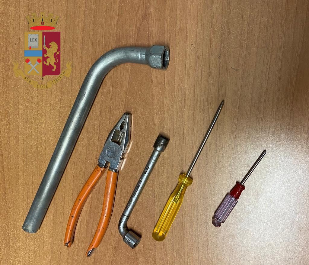 A seguito di perquisizione, sull’auto dell’uomo sono stati rinvenuti tutti i bagagli rubati poco prima, riconosciuti senza ombra di dubbio dalla legittima proprietaria, nonché 2 cacciaviti, 1 pinza da elettricista e 2 chiavi inglesi, che sono stati sequestrati. La minore è stata affidata alla zia e per C.R. si sono aperte le porte del carcere.