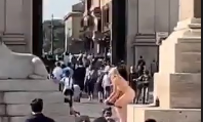 Roma, il caldo bollente – è proprio il caso di dirlo – dà alla testa. Ieri pomeriggio, in mezzo a tantissima gente, una donna si è spogliata togliendosi addirittura le mutande. E il video, indovinate un po’, ha rapidamente fatto il giro del web.