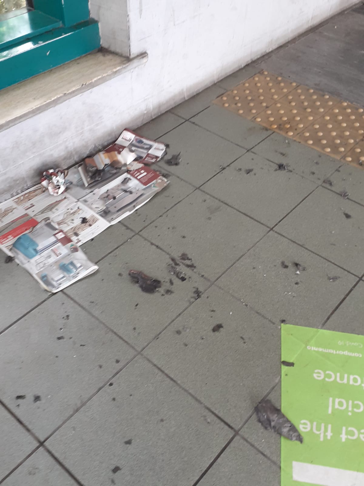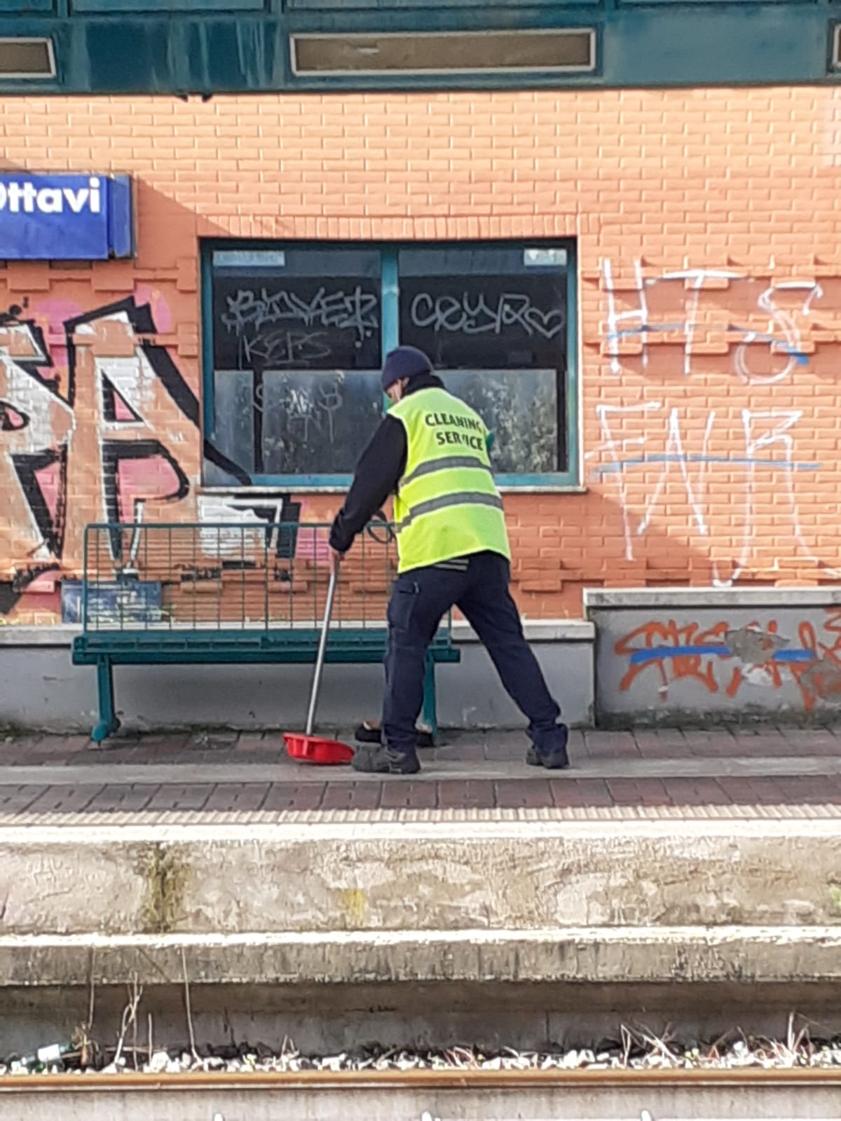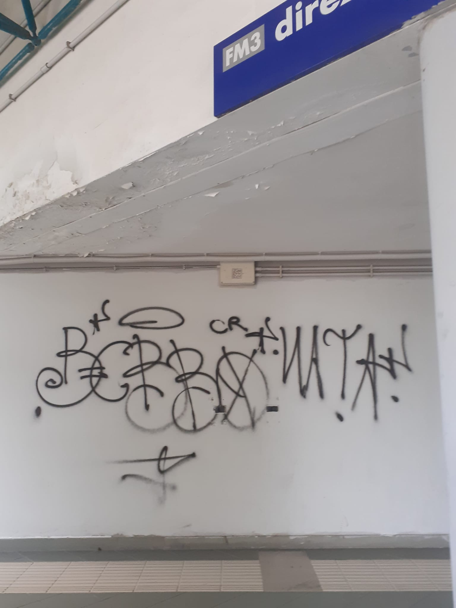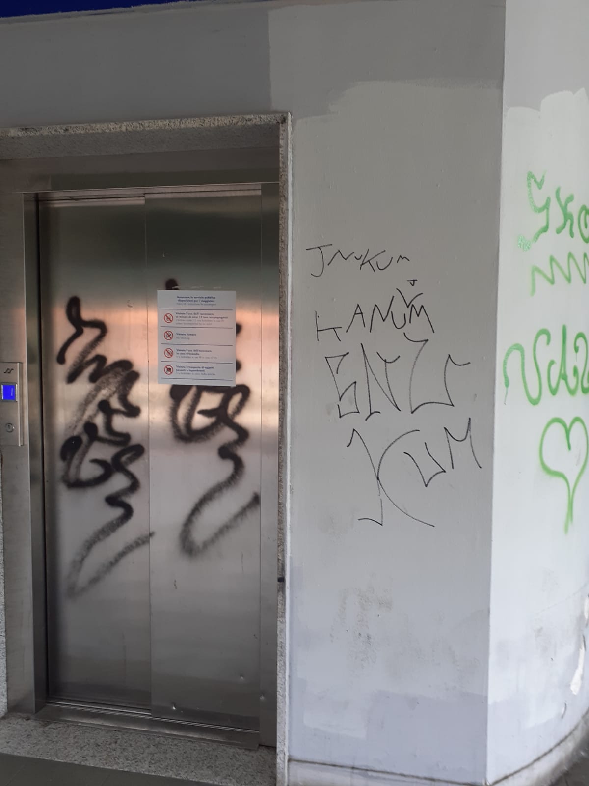 “Guardi cos’hanno combinato ancora quei ragazzacci!” Sotto le macchinette obliteratrici quel che resta di un fuocherello acceso -per divertimento o per noia – con dei vecchi giornali verosimilmente nella notte, dai soliti noti.