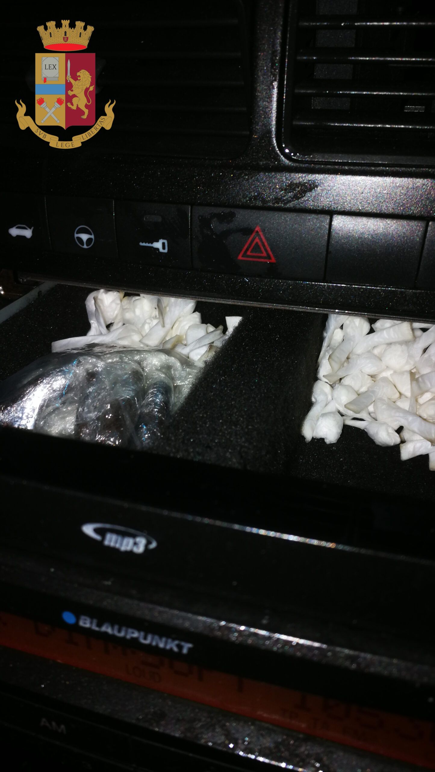 All’interno di una è stata individuata la presenza di un pulsante supplementare che una volta attivato, ha azionato un dispositivo elettronico che ha svelato un vano occulto montato dietro l’autoradio dove era stata celata della sostanza stupefacente. La droga, oltre un kilogrammo tra hashish e cocaina era suddivisa in panetti e involucri di diversa grandezza, pronta ad essere immessa sul mercato.