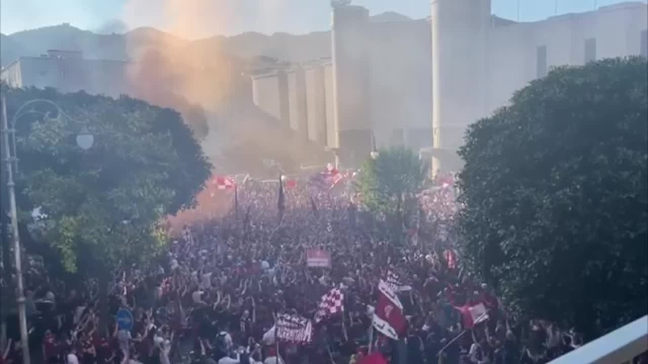 La Salernitana torna in serie A dopo 23 anni ed esplode la festa. Poco distanziamento e poche mascherine tra i tifosi che festeggiano la promozione.