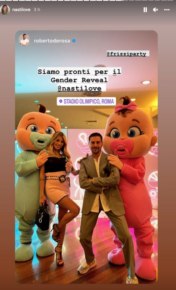 Accompagnato dalla musica di Beyoncé e gli applausi dei presenti, Mattia dopo il gol si è inginocchiato ai piedi di Chiara e, dopo aver baciato il campo, si è alzato e ha dato un lungo bacio alla sua amata. Nel frattempo un tripudio di coriandoli azzurri venivano sparati nel cielo e nello schermo dell’olimpico appariva la scritta “It’s a boy”.