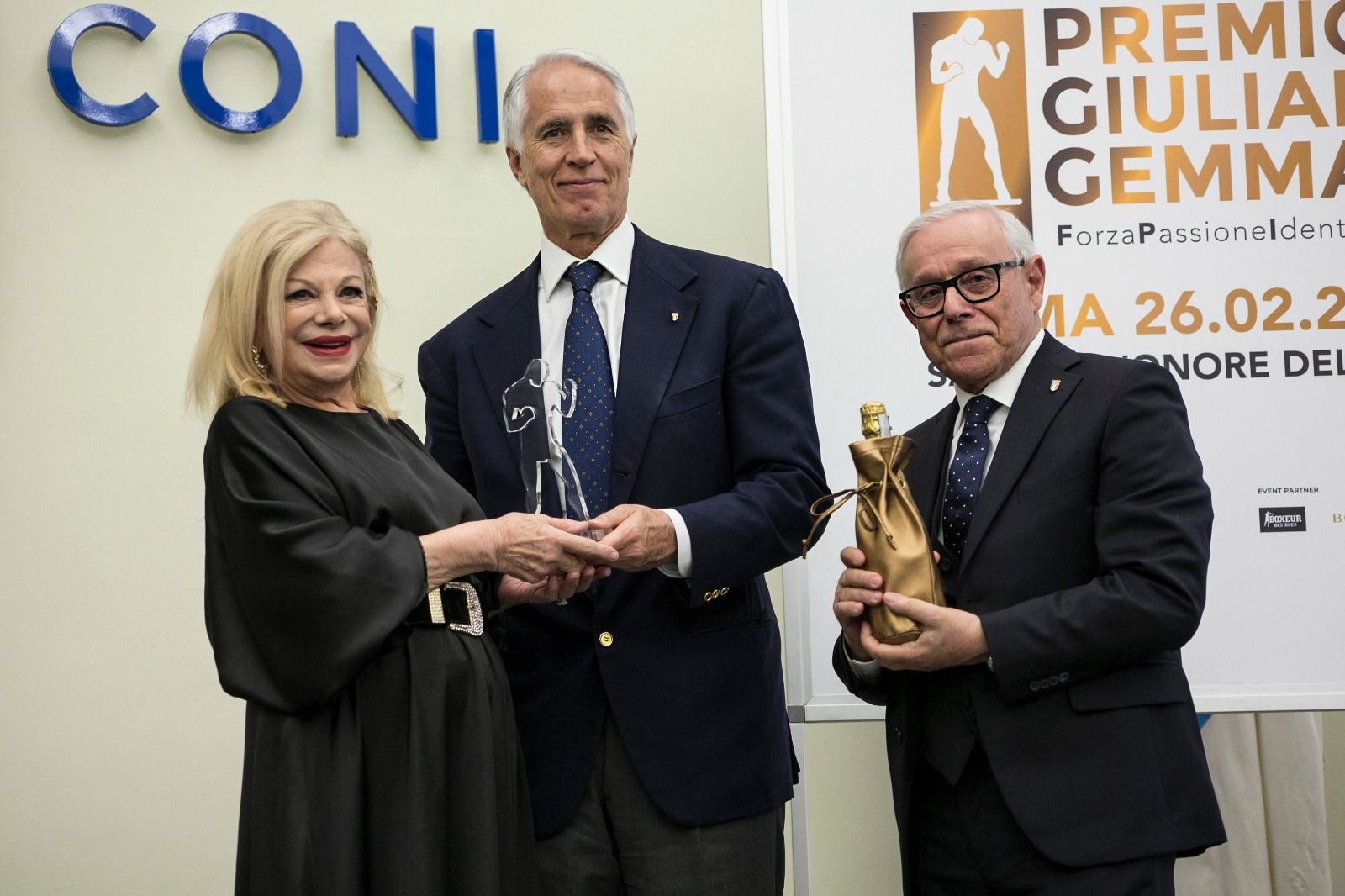 La quarta edizione del “Premio Giuliano Gemma 2020 – Forza, Passione, Identità” si è svolta ieri sera a Roma presso il Salone d’Onore del Coni. Promosso ed organizzato dalla Federazione Pugilistica Italiana, grazie al Presidente Vittorio Lai, insieme al promoter Vladimiro Riga, con il patrocinio del CONI, della Regione Marche, di Roma Capitale e dell’Istituto per il Credito Sportivo, la collaborazione artistica di Tiziana Rocca, il supporto di Artmediasport e la collaborazione di Romarteventi di Francesca Piggianelli e la partnership istituzionale dell’Istituto Luce Cinecittà, della Fondazione Film Commission di Roma e del Lazio e della Fondazione Marche Cultura, l’evento ha visto la partecipazione di molti personaggi istituzionali e del mondo dello spettacolo, primo fra tutti il padrone di casa, il Presidente del CONI Giovanni Malagò. La serata, presentata dal conduttore e giornalista Rai Andrea Fusco, ha preso il via con la proiezione di un breve video in cui si è reso omaggio all’attore di fama internazionale, scultore, stuntman e sportivo, Giuliano Gemma, a cui è seguito il ricordo delle figlie Vera Gemma e Giuliana Gemma e dell’amico fraterno Nino Benvenuti. L’ambita statuetta che riproduce l’opera “Il Pugile” dell’attore-artista è stata consegnata a tutti i personaggi più rappresentativi e meritevoli che nel 2019, con maestria e professionalità, hanno contribuito a diffondere i valori di Gemma e della noble art.