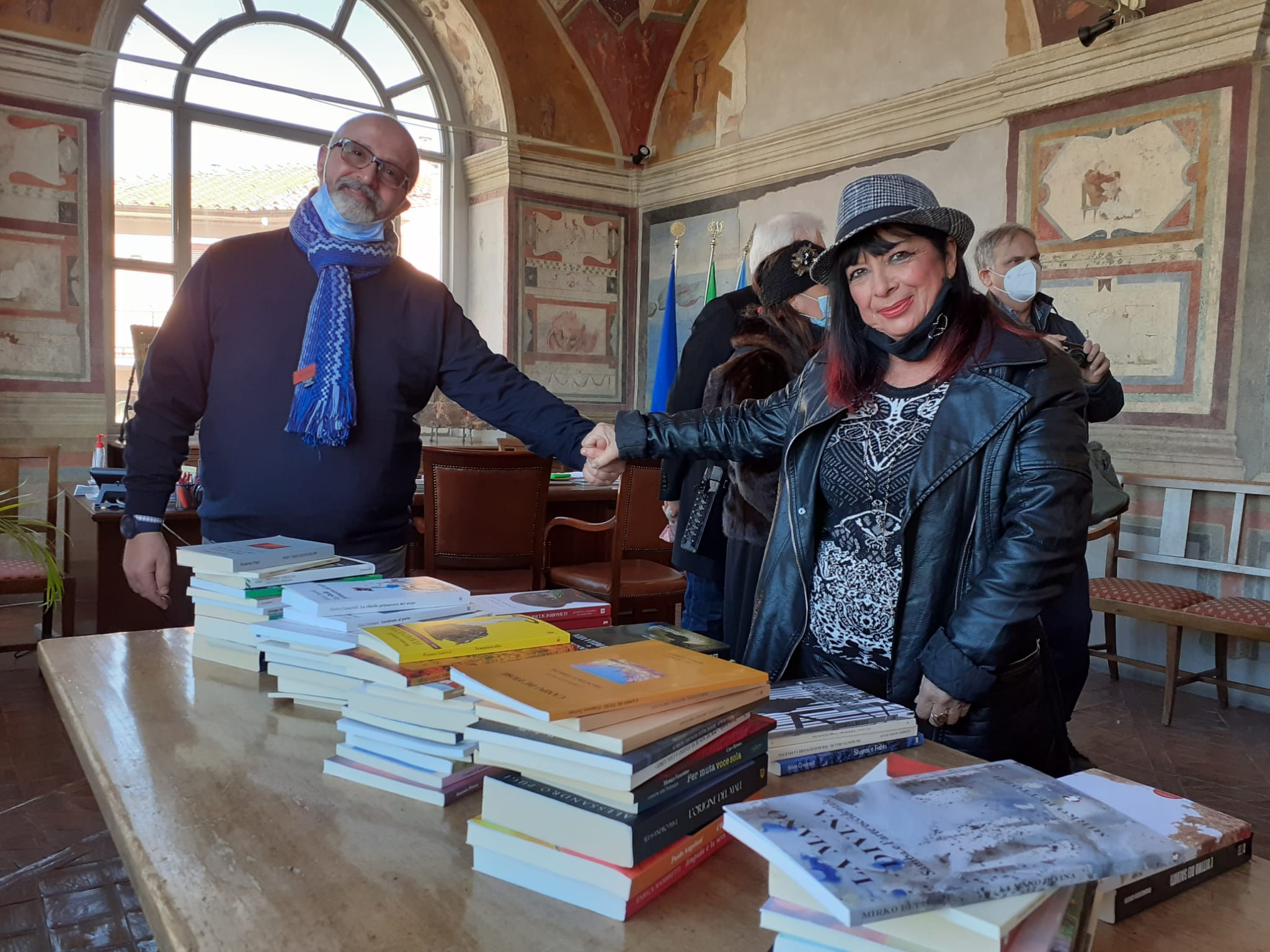 Si è svolta presso la Sala degli affreschi del Palazzo baronale Orsini sede del Comune la consegna in dono di una collana di libri molto speciali, testi inediti selezionati al premio letterario internazionale BOOKS for PEACE dal Prof. Antonio Imeneo e Francesca Piggianelli che hanno scelto proprio Anguillara, dove si svolgerà la prossima Edizione del prestigioso Premio Internazionale ed altre iniziative di cinema, teatro, musica, nello spirito della speranza, pace, cultura e solidarietà.