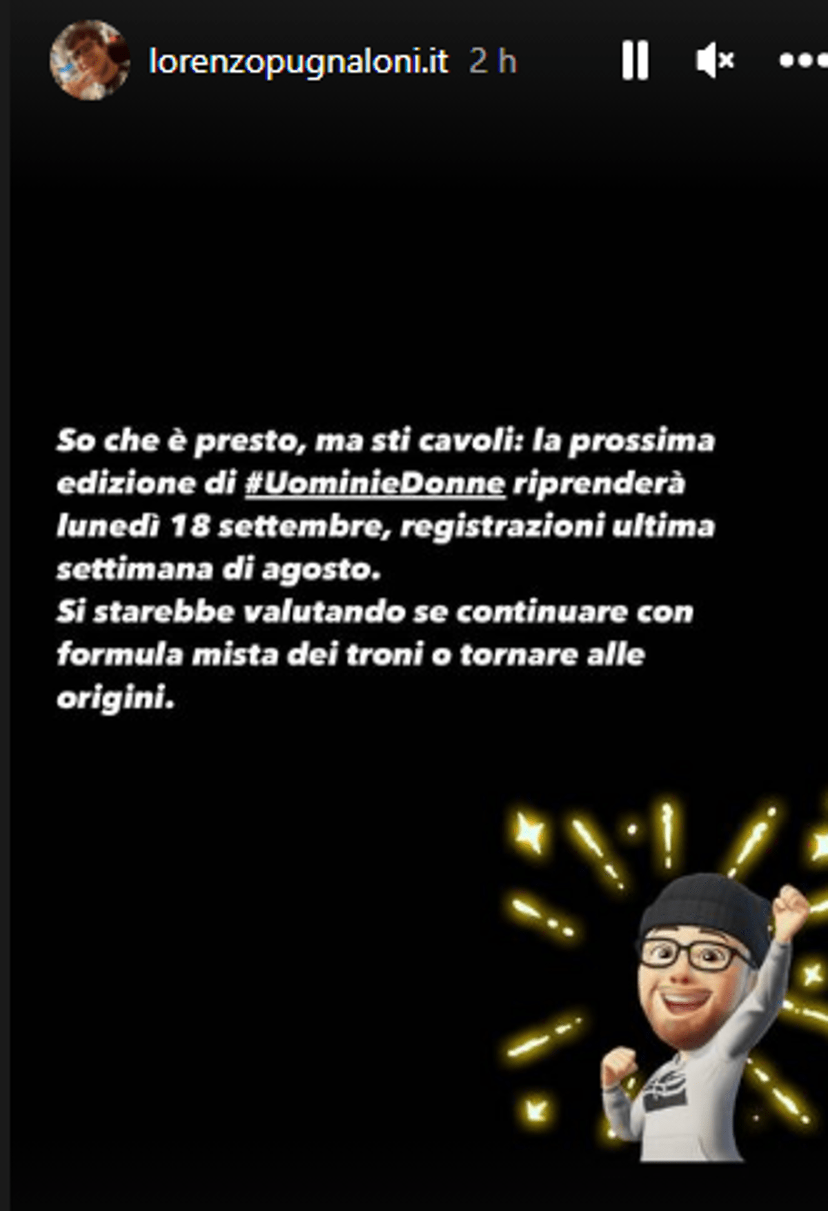 Poco fa la pagina Instagram @uominiedonneclassicoeover ha diffuso infatti una vera e propria notizia-bomba ovvero la possibile data d’inizio della nuova stagione di Uomini e Donne. Secondo quanto riportato nell’ultima storia Instagram dell’esperto blogger il programma della De’ Filippi potrebbe riprendere il prossimo lunedì 18 settembre 2023, con registrazioni fissate per l’ultima settimana di agosto. Se così sarà – ma non abbiamo dubbi circa la fondatezza dell’indiscrezione considerando la fonte più che autorevole – possiamo iniziare allora ufficialmente il conto alla rovescia…