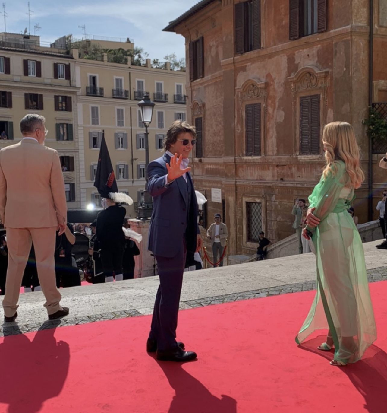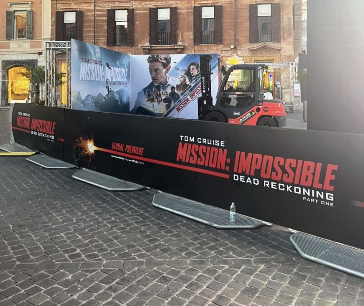 Scegliere Roma come location per la premier è stato strategico: è qui, infatti, che sono state girate molte scene del settimo capitolo della saga, oltre che a Venezia. Tom Cruise, rinunciando alla controfigura, ha sfrecciato per le strade della Capitale utilizzando alternativamente una Fiat 500 – che oggi era in bella mostra a Piazza di Spagna – e una moto, anche questa a disposizione dei visitatori.