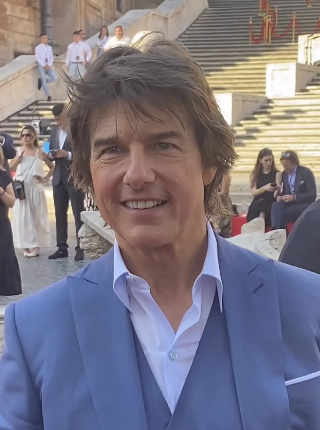 Bagno di folla oggi a Roma per assistere all’arrivo di Tom Cruise, star di Mission: Impossible – Dead reckoning Part 1. A Piazza di Spagna e sulla scalinata di Trinità de’ Monti si è svolto il ret carpet del film diretto dal regista premio Oscar Christopher McQuarrie.