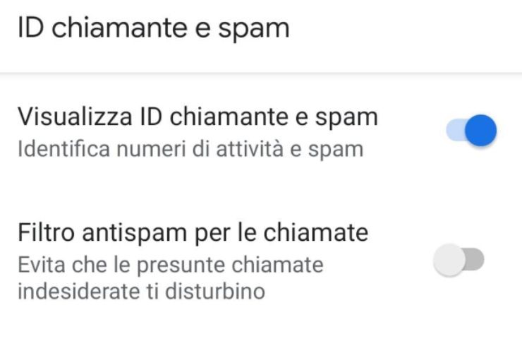 • Impostazioni chiamata e poi Id chiamante e spam (alcuni smartphone hanno direttamente quest’ultima voce senza la prima)