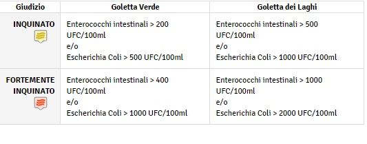 Il giudizio di Goletta viene dato in base ai risultati ottenuti dalle analisi microbiologiche (sono presi come riferimento i valori limite per la balneazione indicati dal Decreto del Ministero della Salute del 30 marzo 2010, nell’Allegato A).