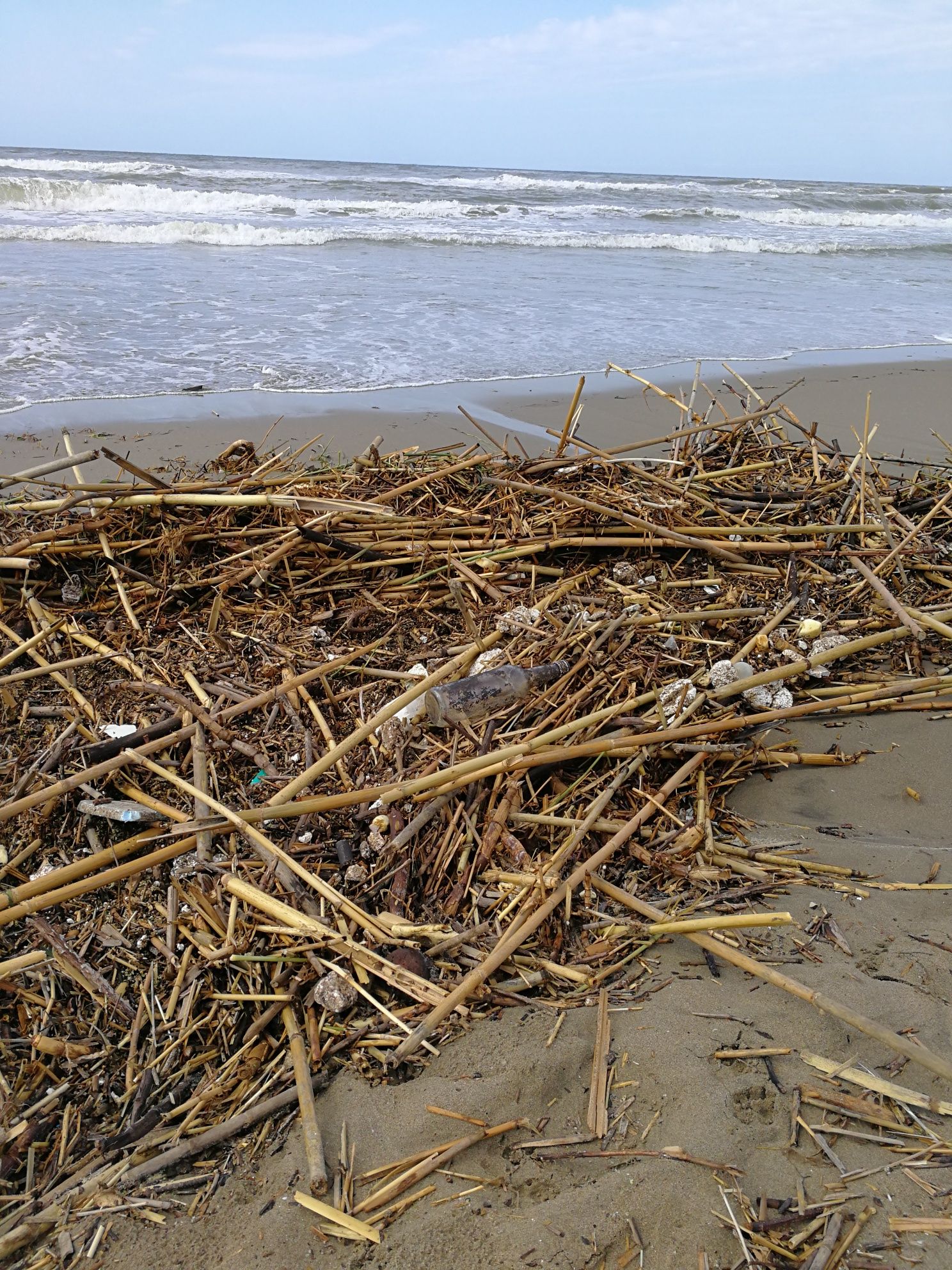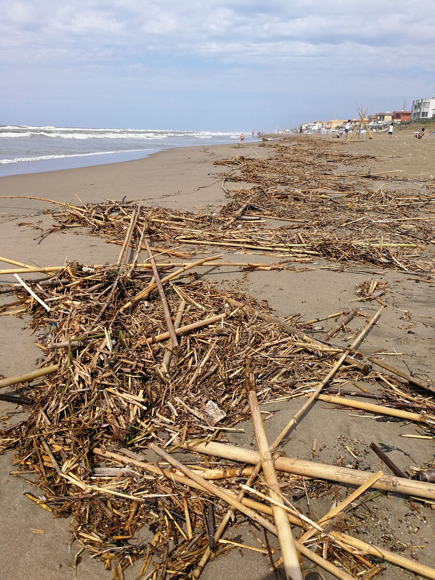Il mare e l’arenile invasi di canne, vegetazione proveniente da canali e fossi, detriti, plastica e sostanze inquinanti, oltre a un