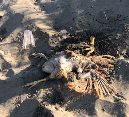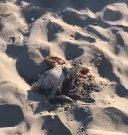 I polli erano riversi sulla sabbia: alcuni erano in avanzato stato di decomposizione, mentre altri erano chiusi in sacchetti di plastica.