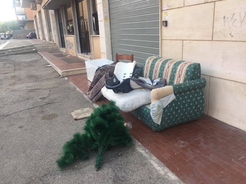 Torvaianica: in via La Spezia sempre peggio tra rifiuti, mobili vecchi e alberi di Natale