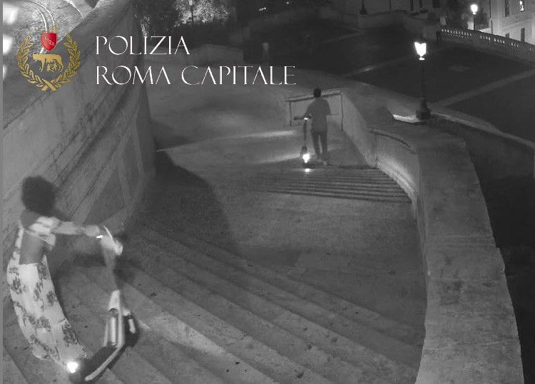 coppia di turisti lancia monopattino contro la scalinata di Trinità dei Monti