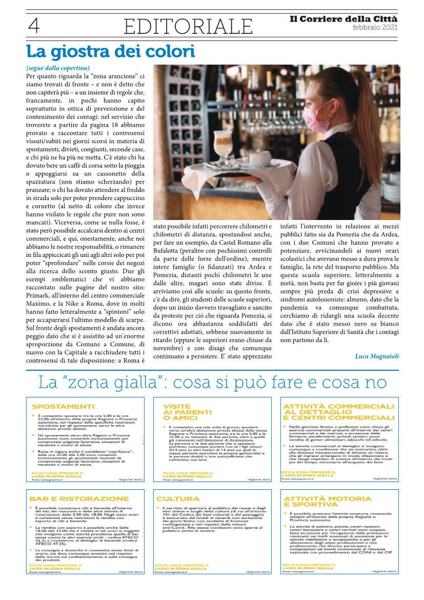 Colori associati a regole: sembrerebbe facile ma non lo è stato affatto, anzi. Un po’ perché le norme erano ingarbugliate, un po’ perché, francamente, in alcuni sensi si è faticato a capire le ragioni “reali” (troppo facile dire infatti “disposizioni anti-contagio” e buttarci dentro di tutto) alla base dei provvedimenti. In questo nostro speciale, allora, abbiamo voluto raccontare tutti i controsensi, a nostro avviso, in particolare della cosiddetta “fascia arancione” riportandovi anche – attraverso foto e interviste sul campo – quanto accaduto nella pratica a Roma, Ardea e Pomezia.
