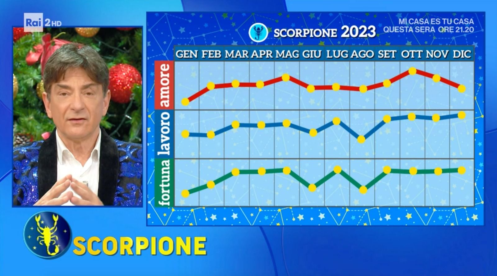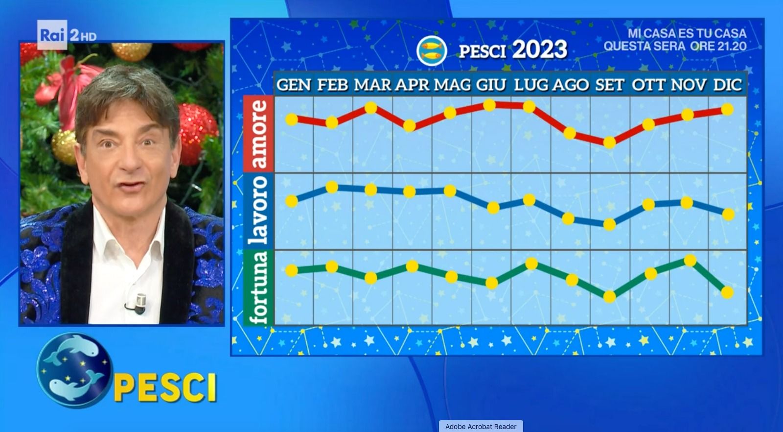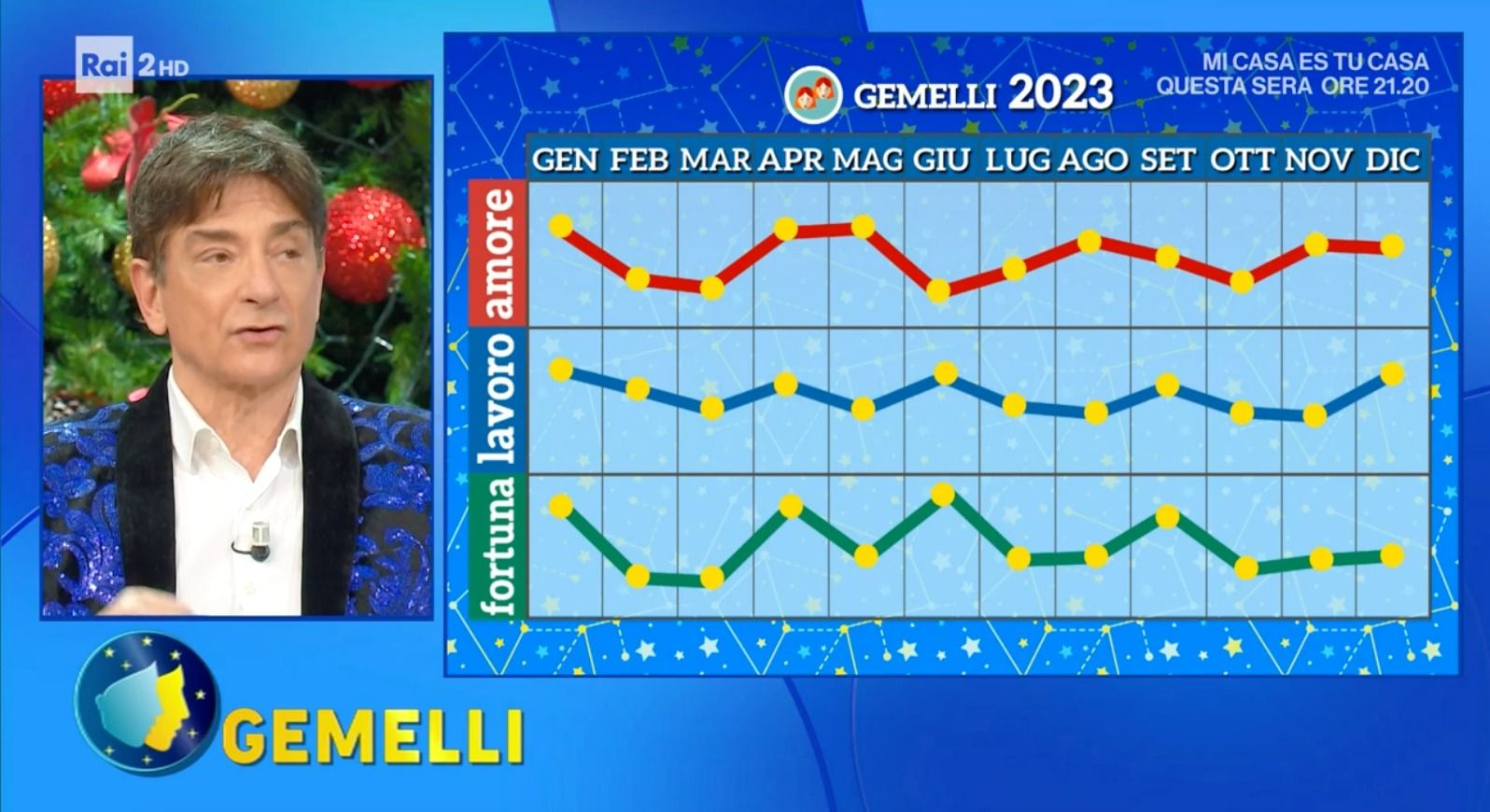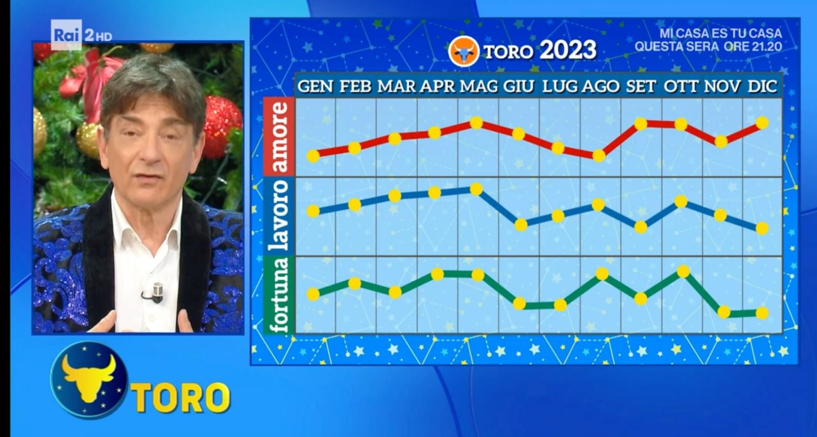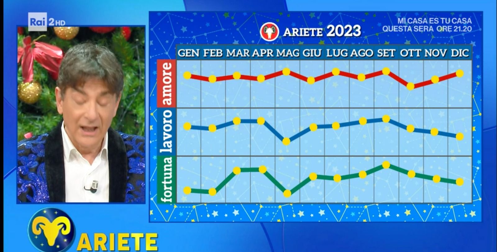 I grafici per tutti i segni zodiacali secondo l’Oroscopo 2023 Paolo Fox ai Fatti Vostri su Rai 2