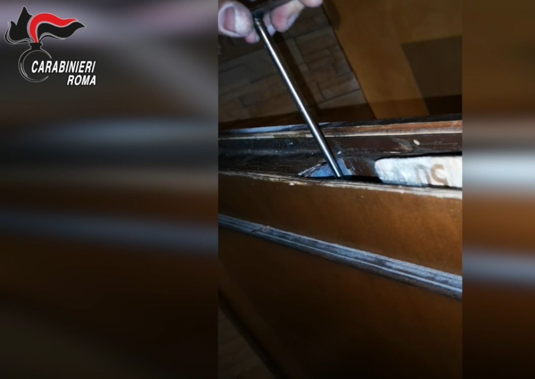 Con l’ausilio di alcuni attrezzi i militari hanno scoperto una “tasca metallica” ingegnosamente ricavata nella porta e tenuta chiusa da un sistema di bloccaggio costituito da calamite che serrava in vano. All’interno dello stipo così ricavato, i Carabinieri hanno rinvenuto 7 involucri contenenti circa 60 grammi di sostanze stupefacenti, in particolare, oltre 50 grammi di cocaina ed una più modesta quantità di hashish, nonché – all’interno di una busta di cellophane – la somma contante di quasi 1000 euro. Provento dell’attività illecita. La droga ed il denaro contante sono stati sequestrati, mentre il pusher è stato arrestato per detenzione ai fini di spaccio di sostanze stupefacenti.