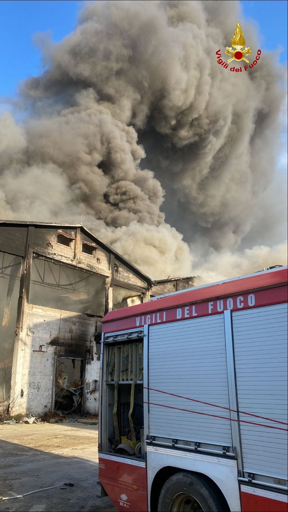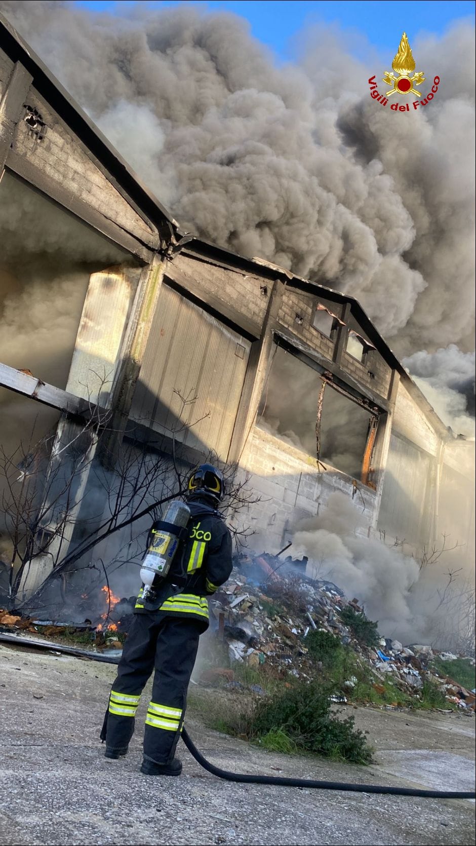 Le fiamme stanno interessando dei capannoni in disuso. Da una prima stima sembrano quattro quelli interessati dall’incendio, ciascuno di circa 1500 mq.