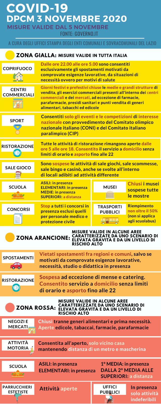 Oltre ai tre scenari con differenti modi di agire per arginare la diffusione del virus, su tutto il territorio nazionale dal 5 novembre al 3 dicembre si dovranno rispettare le seguenti misure: