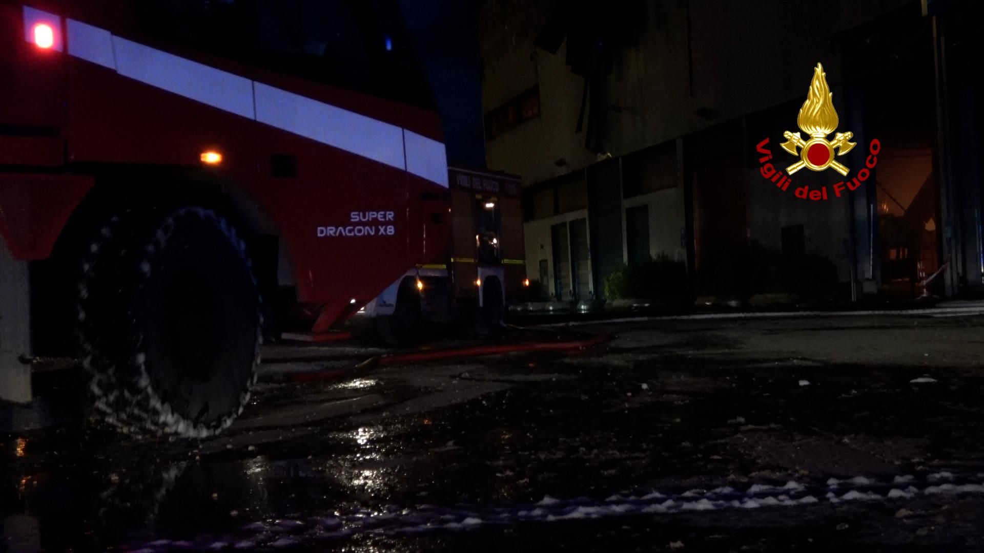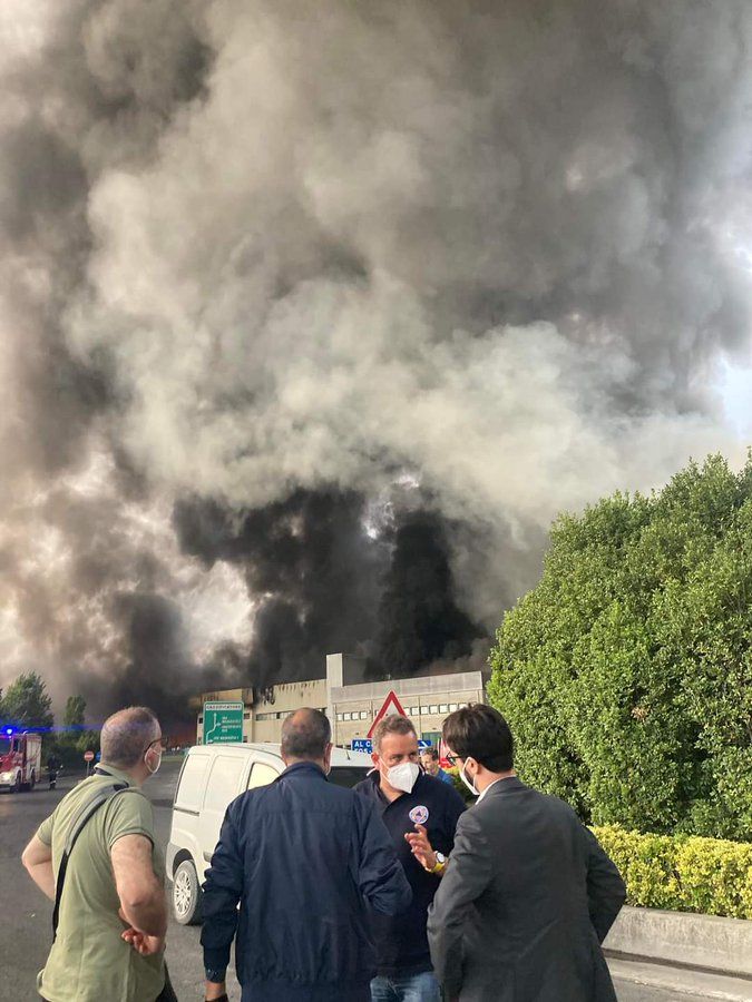 “La situazione dell’incendio è davvero molto complessa”, dichiara Riccardo Ciofi, del sindacato dei vigili del fuoco, “in quanto il calore e le fiamme che si sono sprigionate stanno attaccando anche gli altri magazzini adiacenti contenenti rifiuti. Nonostante il grande impegno del personale l’area che sta bruciando è molto vasta, tanto che la sala operativa ha dovuto inviare anche automezzi speciali quali il dragon aeroportuale e la chilolitrica per l’approvvigionamento di acqua. Sono circa cinquanta gli uomini dei vigili del fuoco impiegati sull’incendio e le operazioni di spegnimento consisteranno nell’abbassare le fiamme e circoscrivere il sito. Poi, successivamente, iniziare le operazioni di smassamento del materiale per poter estinguere definitivamente l’incendio. Sul posto inviato anche il nucleo CRRC per verificare le condizioni dell’aria dal momento che l’incendio sta dissolvendo anche sostanze nocive per il personale impiegato e per la cittadinanza. Le operazioni di spegnimento richiederanno certamente alcuni giorni di lavoro”.