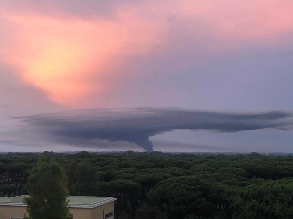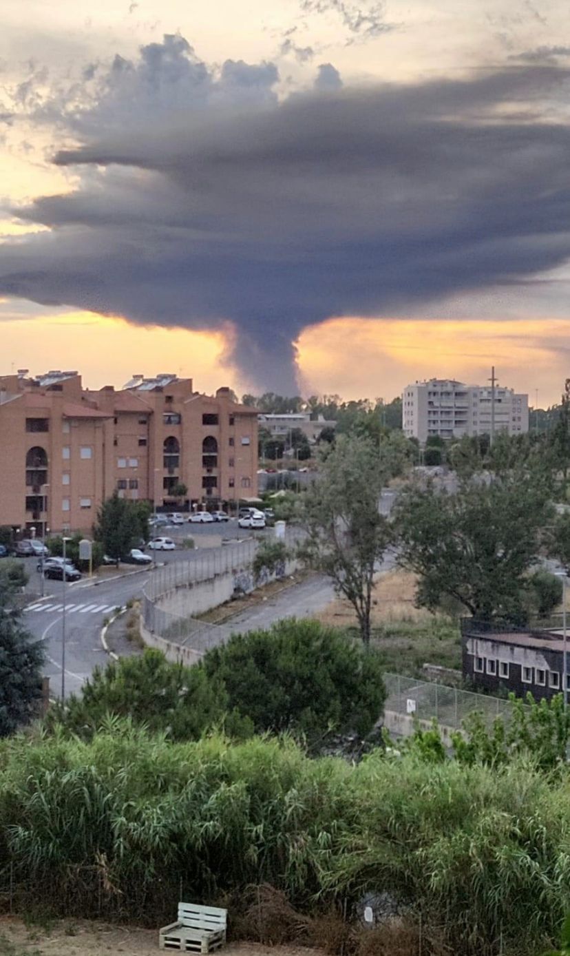 Colonna di fumo visibile dai Castelli Romani e dal litorale
