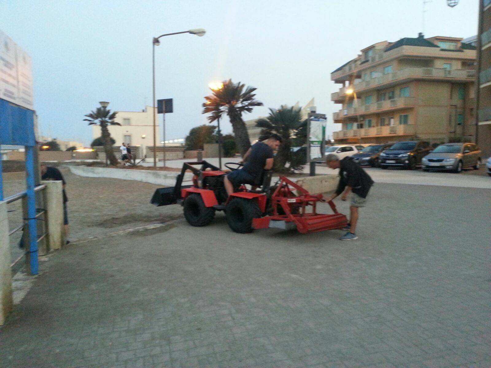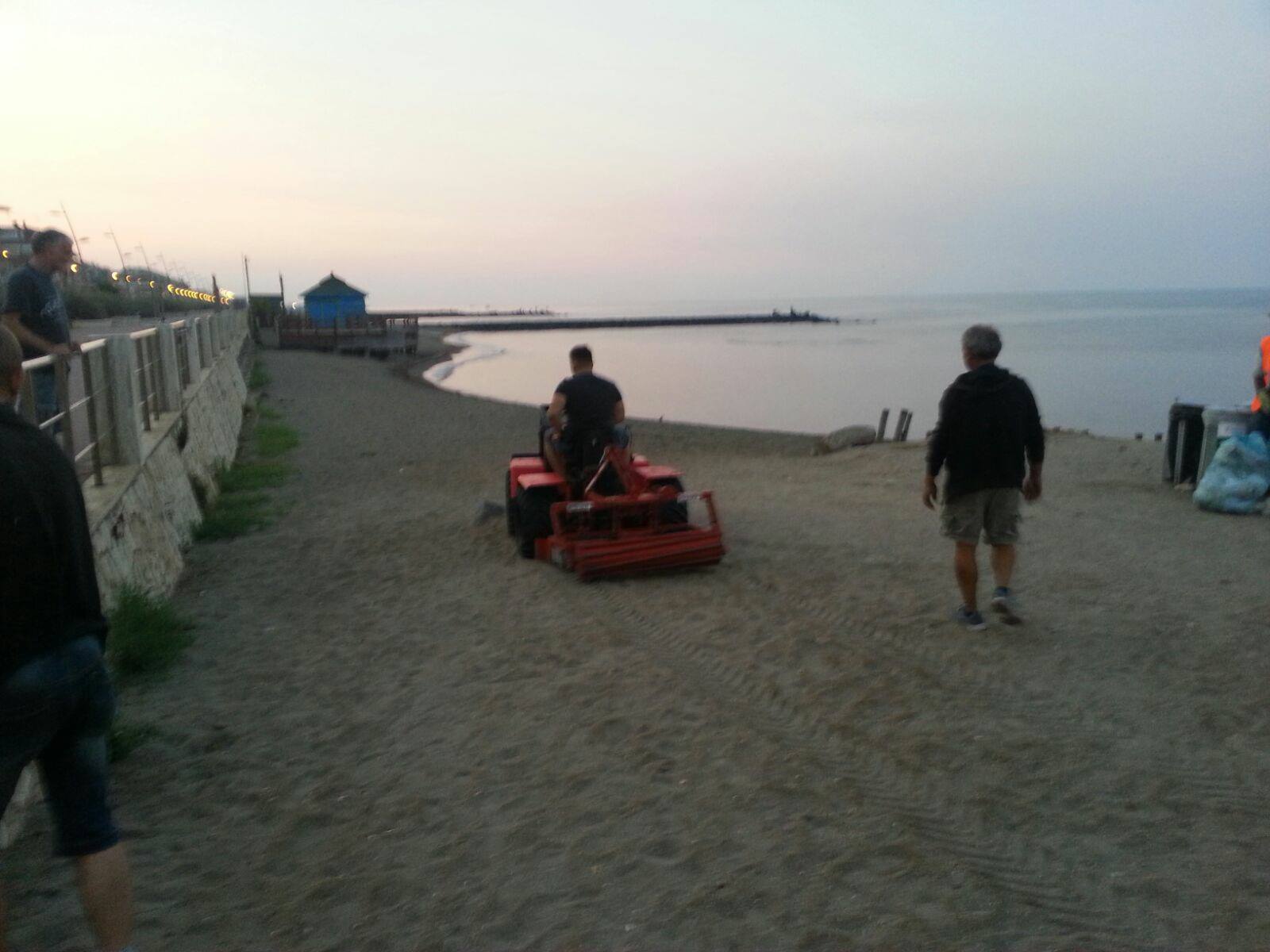 Nel frattempo, oggi, sul Lungomare di Ponente è intervenuta la macchina vagliatrice per “tirare a lucido” la sabbia.