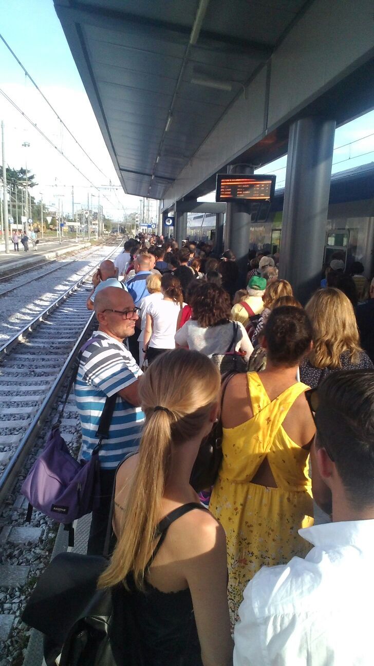 Ma il successivo annuncio ha addirittura del surreale: alle 17:05 la capotreno comunica che il treno fermerà la sua corsa a Romaprilia. I ritardi hanno creato addirittura una nuova stazione? Nella rassegnazione generale il treno arriva a Campoleone alle 17:19, e qui succede l’impensabile. Tutti i passeggeri vengono fatti scendere per essere trasferiti su un altro treno che proseguirà il viaggio verso Nettuno. Ma dell’altro treno neanche l’ombra, perché è partito con 40 minuti di ritardo. I viaggiatori si riversano su una banchina strettissima, rischiando di essere risucchiati e travolti da un treno in arrivo a tutta velocità. Altri attraversano i binari per raggiungere il sottopasso. La capotreno non sa come placare i passeggeri. Alle 18, finalmente, arriva il treno per Nettuno. Un viaggio di quasi 3 ore, che ha messo in pericolo la vita di centinaia di utenti e ha senz’altro rovinato il pomeriggio a tutti. Pubblichiamo il racconto di questo gruppo di pendolari perché i disagi che si trovano costretti a sopportare sono diventati intollerabili.