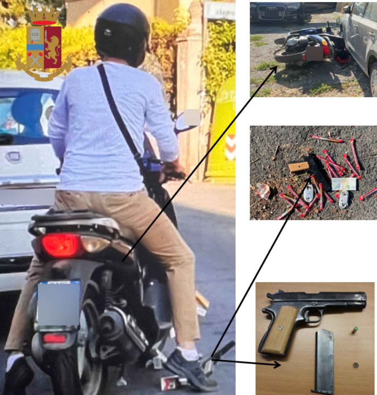 I poliziotti hanno cercato di bloccare gli uomini, che alla loro vista hanno pensato bene di fuggire e di farlo contromano. Fino a quando, alla fine della strada, a causa della presenza di brecciolino, sono andati ad urtare con violenza su un’auto parcheggiata. Benché feriti, i due hanno proseguito la folle fuga a piedi, abbandonando sul posto i due caschi, gli occhiali da sole, la pistola e alcune banconote. Inseguiti, sono stati intercettati e bloccati, con non poche difficoltà, mentre stavano tentando di scavalcare un cancello in via Ellero.