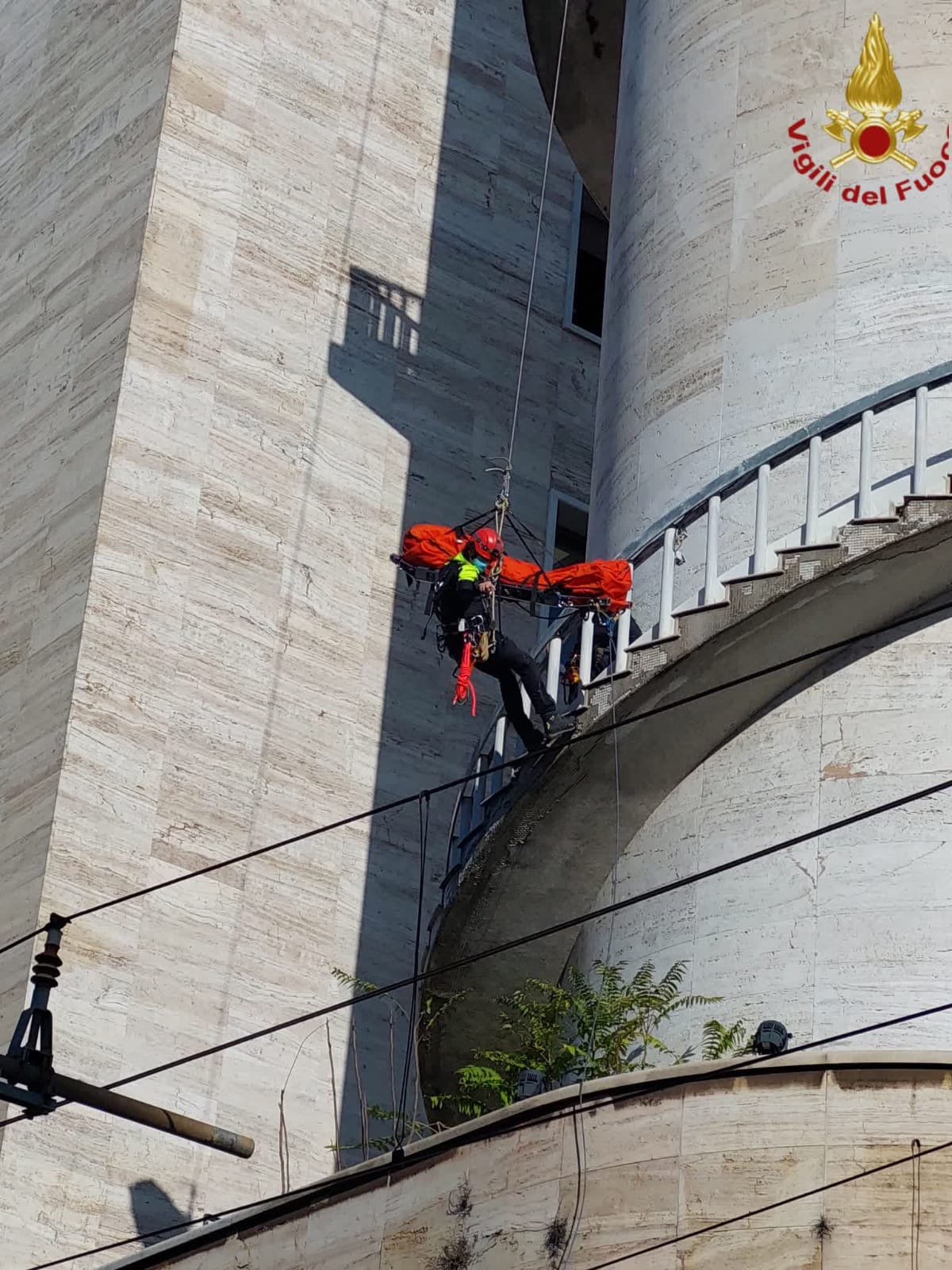 La vittima, un uomo di nazionalità francese, è precipitata dalla torre di Santa Bibiana, quella dell’edificio di proprietà delle ferrovie. Sul posto, per il recupero della salma che è stata trovata intorno alle 6 di questa mattina, sono intervenuti i vigili del Fuoco con il nucleo specialistico SAF, che hanno effettuato delle manovre tecniche per affidare il corpo, ormai senza vita, all’autorità giudiziaria. Sul luogo della tragedia sono intervenuti gli agenti della Polizia di Stato e il personale sanitario del 118, che non ha potuto fare altro che constatare il decesso.