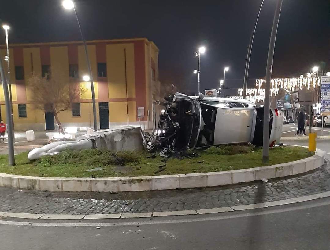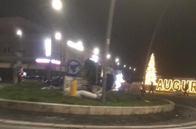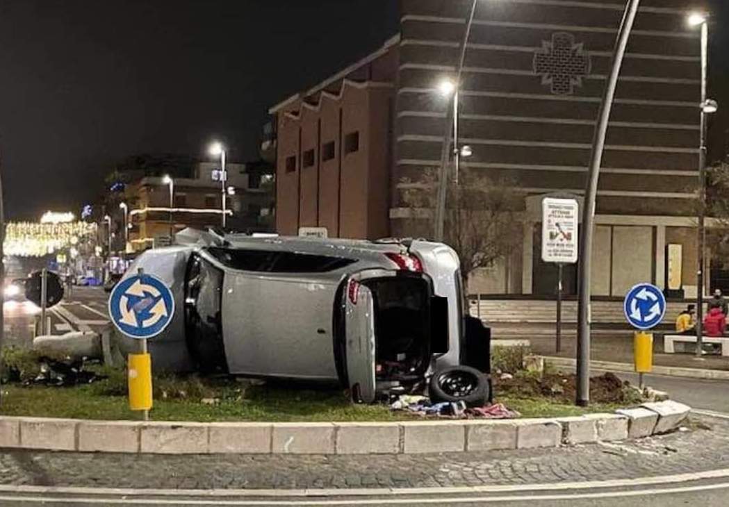 Il primo incidente è avvenuto verso le 21:30. Tre ragazzi di Nettuno a bordo di una Citroen C4, forse in ritardo per il cenone, stavano andando a una festa a Ostia. A causa dell’asfalto reso viscido dalla forte umidità, ma anche a causa della forte velocità a cui andavano, non si sono resi conto che alla fine di viale Spagna c’era la rotonda e non hanno sterzato in tempo, prendendola in pieno prima la banchina di fronte, poi la rotonda, salendo nell’area verde e abbattendo prima la segnaletica, poi la statua.