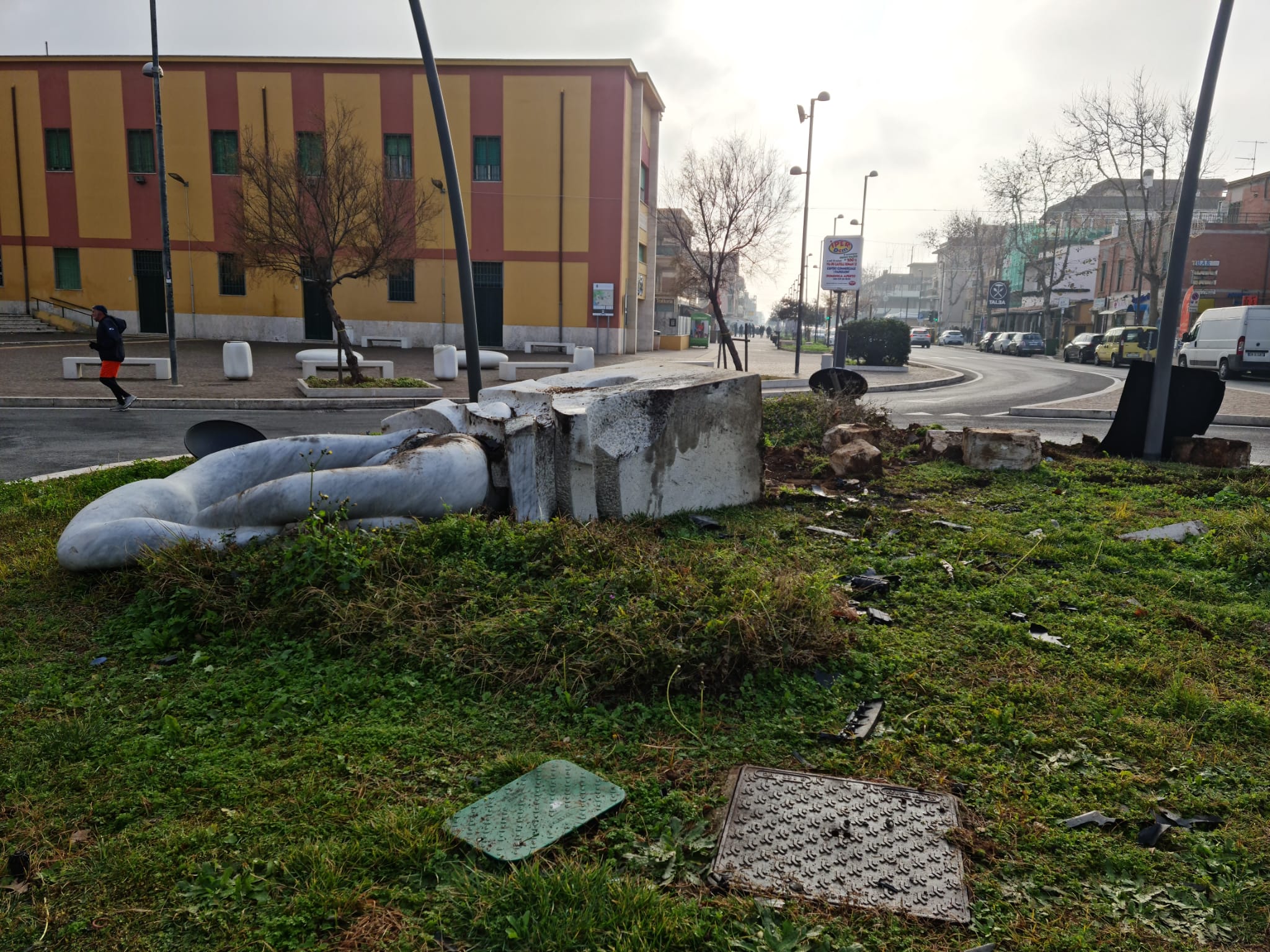 Questa mattina la polizia locale di Pomezia sta effettuando i rilievi per constatare i danni materiali alla piazza in modo da addebitarli agli autori.