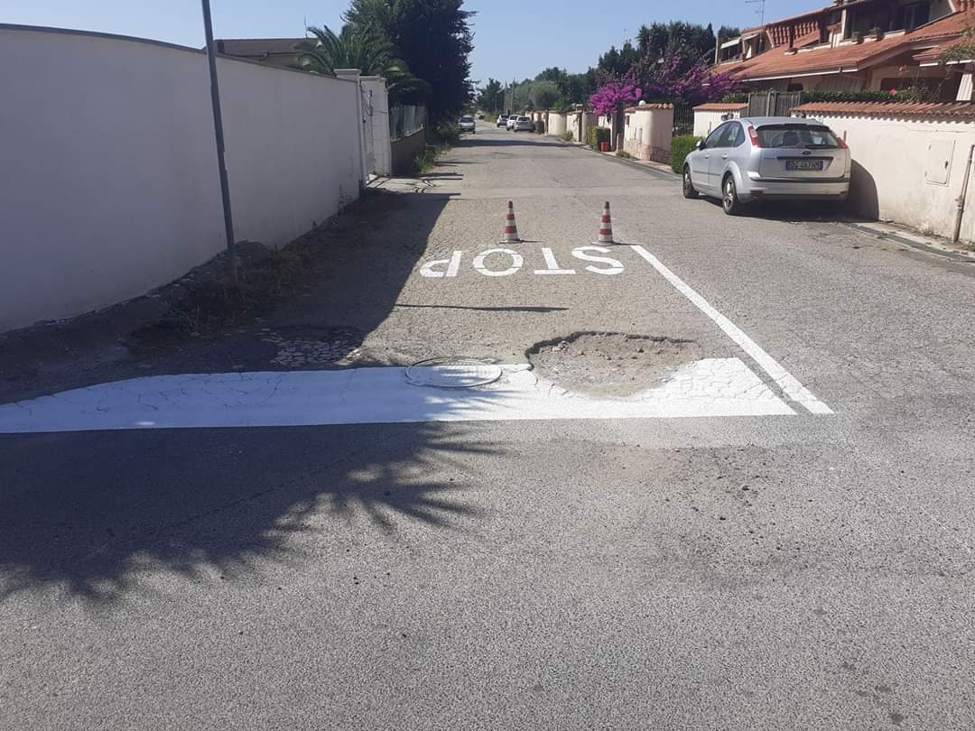 C’è quasi da non credere ai propri occhi, nel vedere il risultato del lavoro compiuto nel quartiere di Nuova Florida all’incrocio in via Verona, all’angolo con via Pisa, dalla ditta incaricata dal Comune di Ardea per rifare la segnaletica stradale orizzontale. Le strisce che della segnaletica che formano lo “STOP” sono state disegnate “aggirando” la buca che si trova su via Verona.