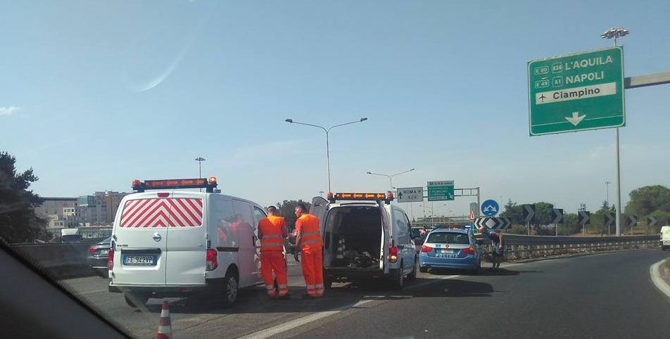 La strada, ora, è in via di sgombero, con ancora una volante della Polizia sul posto. Rimane del traffico, in diminuzione, in direzione Eur.