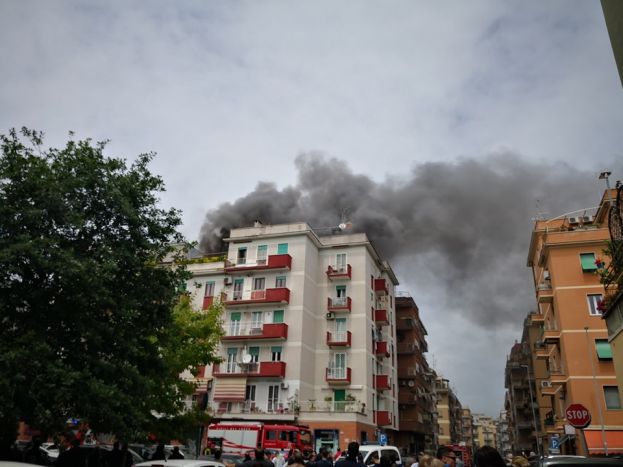 *13:40: un signore anziano, che vive in un appartamento del 5 piano, quello andato a fuoco, è stato portato via in ambulanza, non si conoscono le sue condizioni di salute.