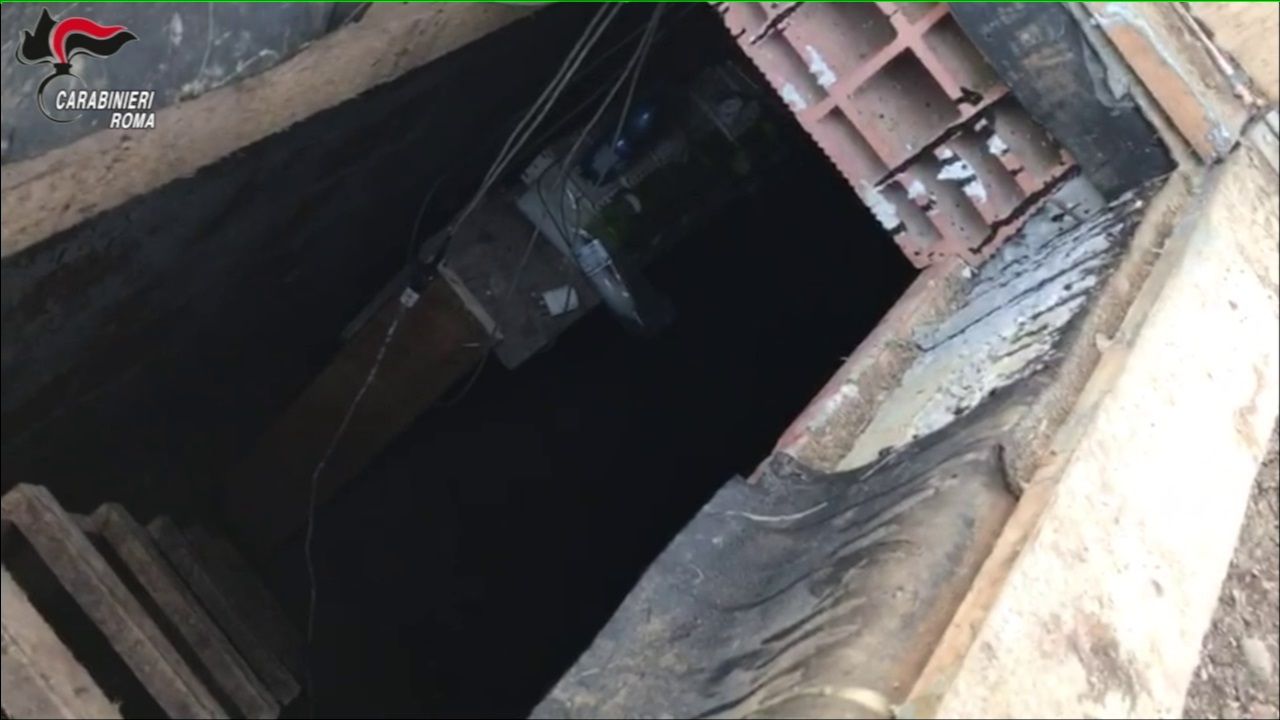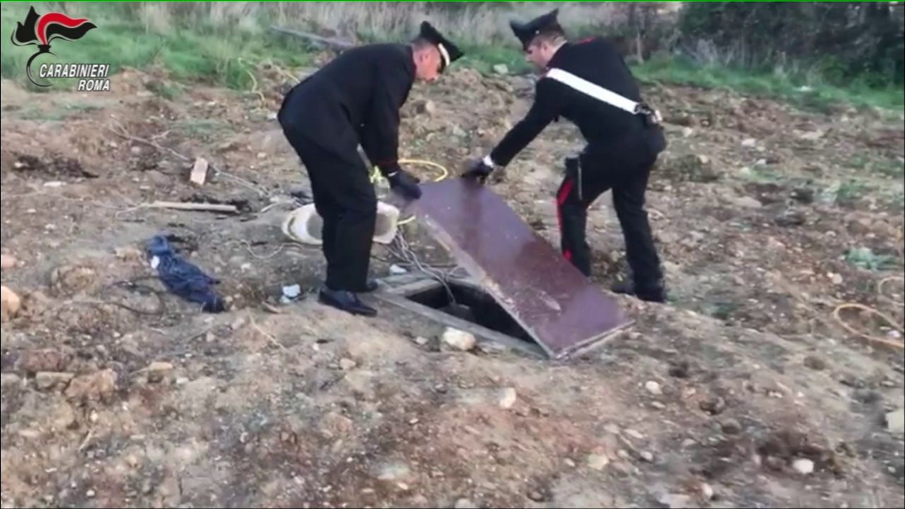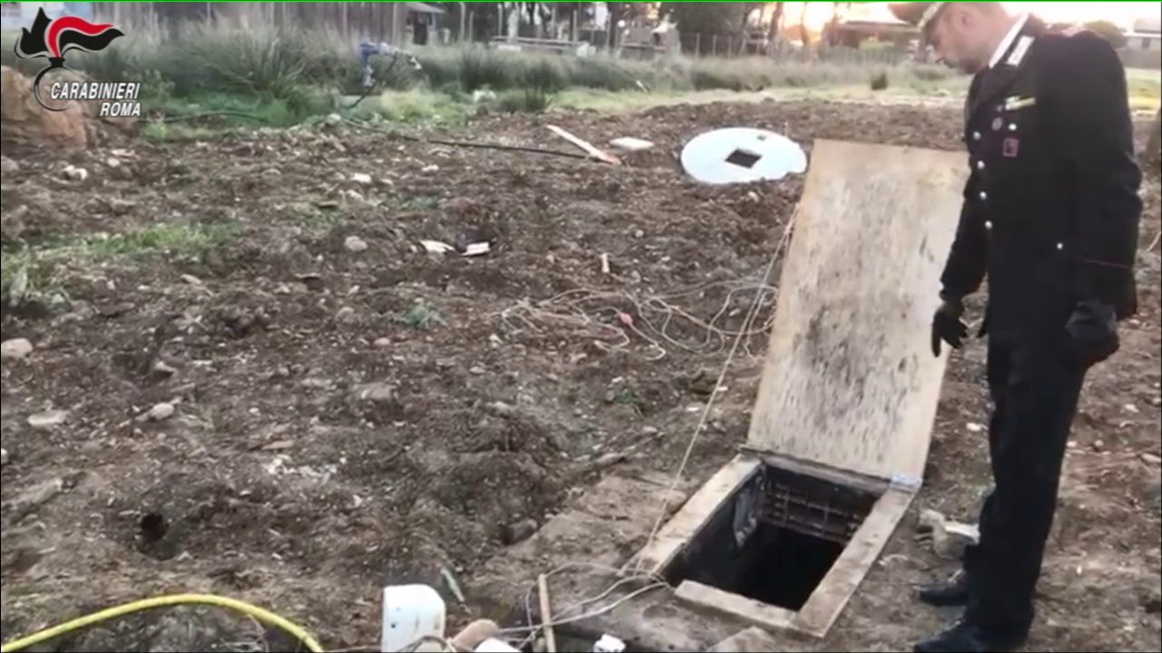 Un cavo di corrente volante partiva da un palo per poi finire interrato nel giardino di una villetta. Proprio questo strano percorso ha fatto insospettire i Carabinieri della Stazione di Cerveteri. Gli agenti, seguendo quel percorso, hanno scoperto una botola nel terreno che portava ad un nascondiglio.