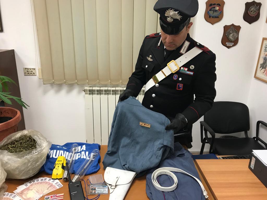 La donna è stata arrestata con le accuse di detenzione ai fini di spaccio di sostanza stupefacente, ricettazione e detenzione di materiale contraffatto. Le indagini dei prossimi giorni serviranno a chiarire la presenza delle uniformi e dei tesserini, per cui non si esclude che possano essere stati usati per commettere rapine o truffe in tutto il territorio nazionale.