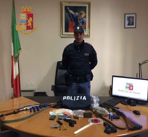 300 grammi di hashish e 100 di marijuana, oltre ad una pistola risultata provento di furto.