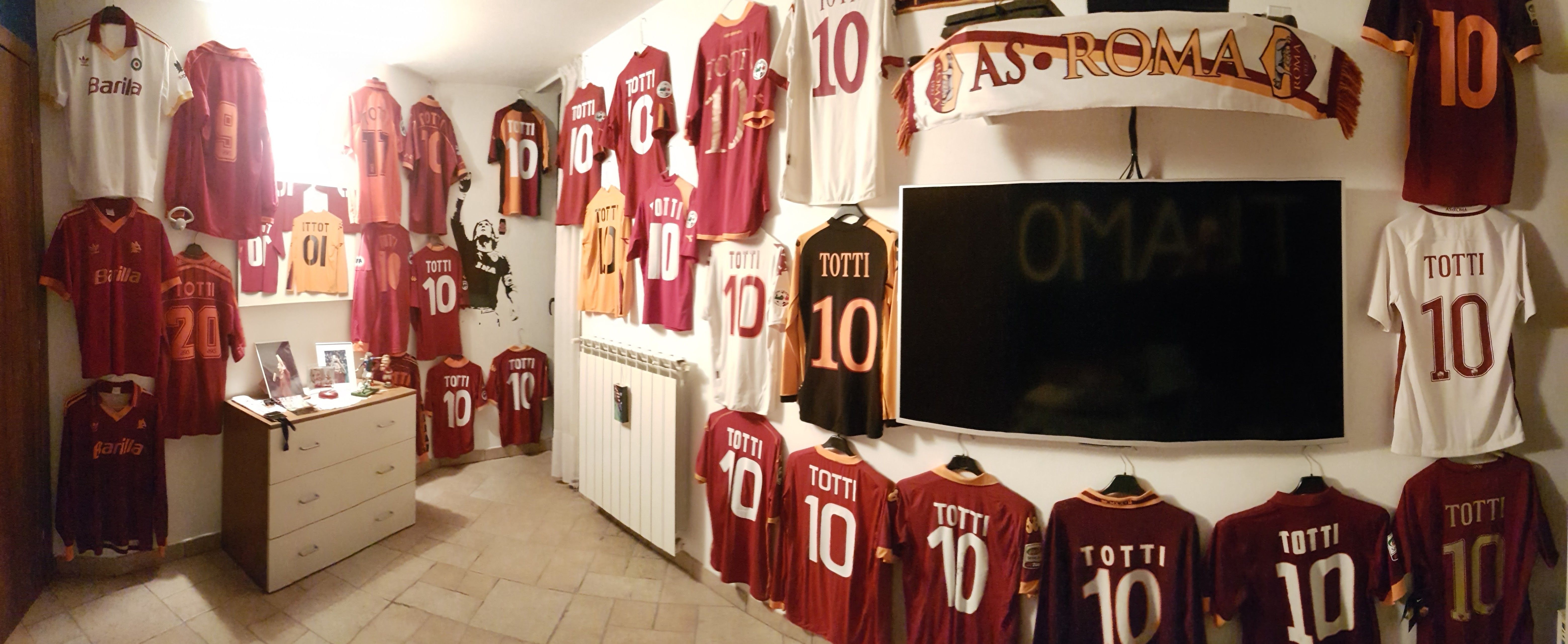 In risalto la foto di Domenico Maturo, che ci scrive da Saronno, in provincia di Varese: non potendo colorare la sua città, ecco come ha “arredato” la sua stanza: decine di maglie di Totti e la sciarpa della Roma.