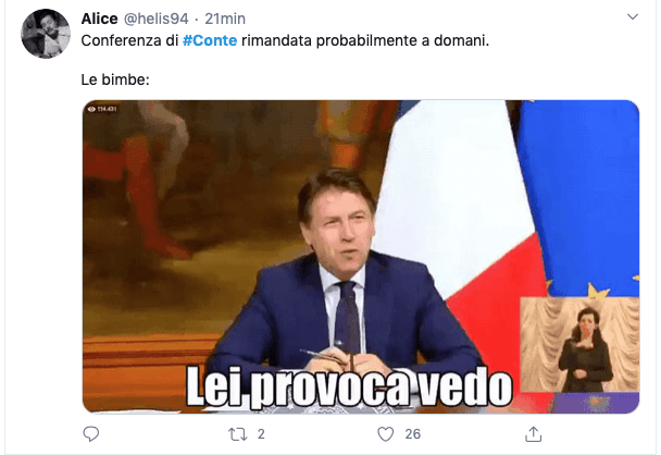 Il web non perdona, si sa. Soprattutto nel periodo della quarantena, quando il tempo a disposizione è maggiore e la voglia di scatenarsi non aspetta altro che il bersaglio perfetto. Come l’annullamento della conferenza stampa del Presidente del Consiglio Giuseppe Conte, prevista per questa sera. Il Premier ha preferito non parlare – peraltro senza fornire nessuna motivazione né dando una data per un nuovo appuntamento, che si presume possa essere domani – di quanto discusso poco prima durante la videoconferenza con Regioni, Anci e Upi, anche se l’argomento è ormai noto a tutti: il prolungamento del  lockdown (almeno) fino al 3 maggio, per evitare assembramenti durante i ponti del 25 aprile e del 1 maggio.