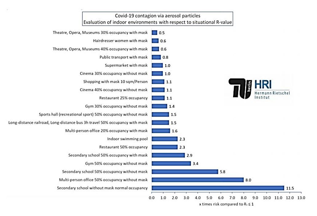 A un anno dalla pandemia e a un anno dalle varie chiusure che hanno portato alle serrande abbassate di musei, ristoranti, bar e cinema, uno studio tedesco condotto dall’Hermann-Rietschel-Instituts della Technische Universität Berlin, è riuscito ad individuare i luoghi in cui il rischio di contrarre il Coronavirus è maggiore.