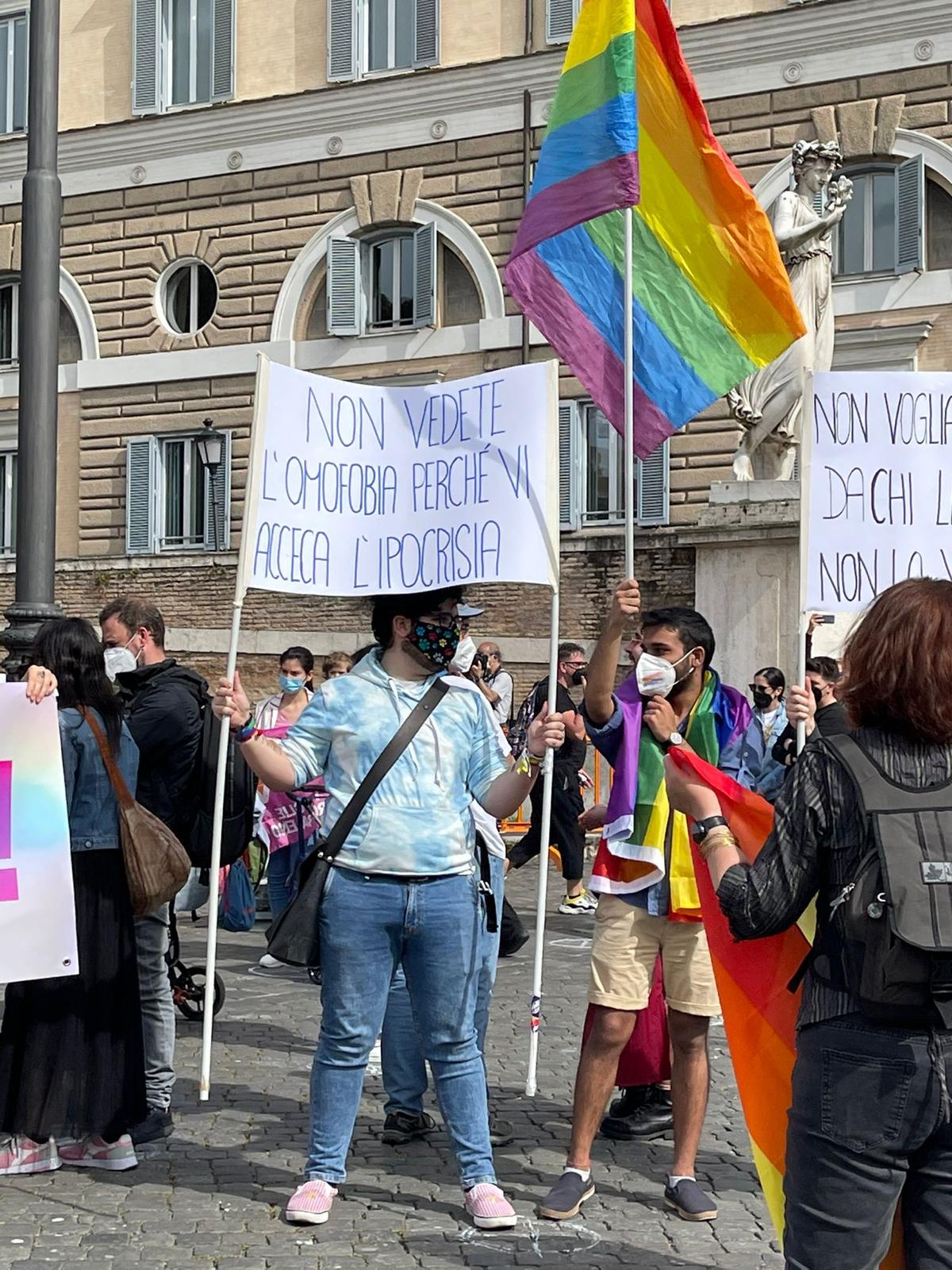 Il messaggio, di fondo, è proprio questo: approvare il provvedimento senza modifiche, così com’è, senza passi indietro. Sono in centinaia sotto il cielo dellaCapitale a manifestare per i proprio diritti, quelli della comunità Lgbtqia+.