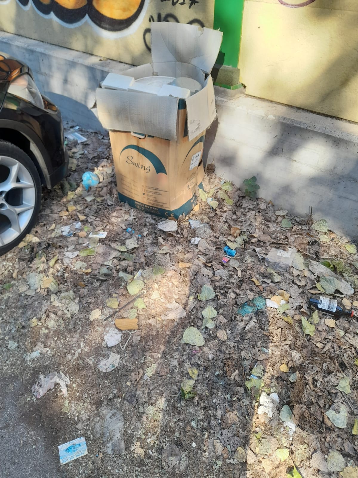 Alberi ormai secchi, con rami che si spezzano e cadono. Foglie che riempiono i marciapiedi, gà invasi dalle erbacce alte più di mezzo metro. E poi bottiglie di birra accatastate insieme ad altri rifiuti e scarti di cibo.