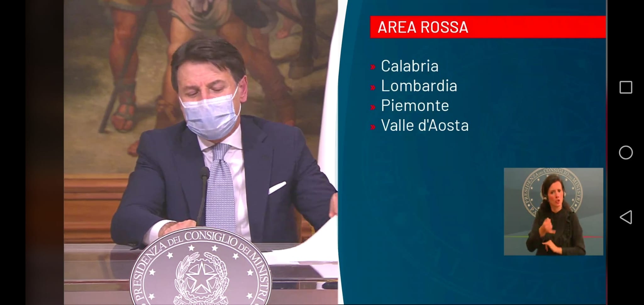 Calabria, Lombardia, Piemonte e Valle D’Aosta: sono le regioni dell’area rossa a livello di rischio alto. Lo dice il premier Giuseppe Conte, in conferenza stampa.