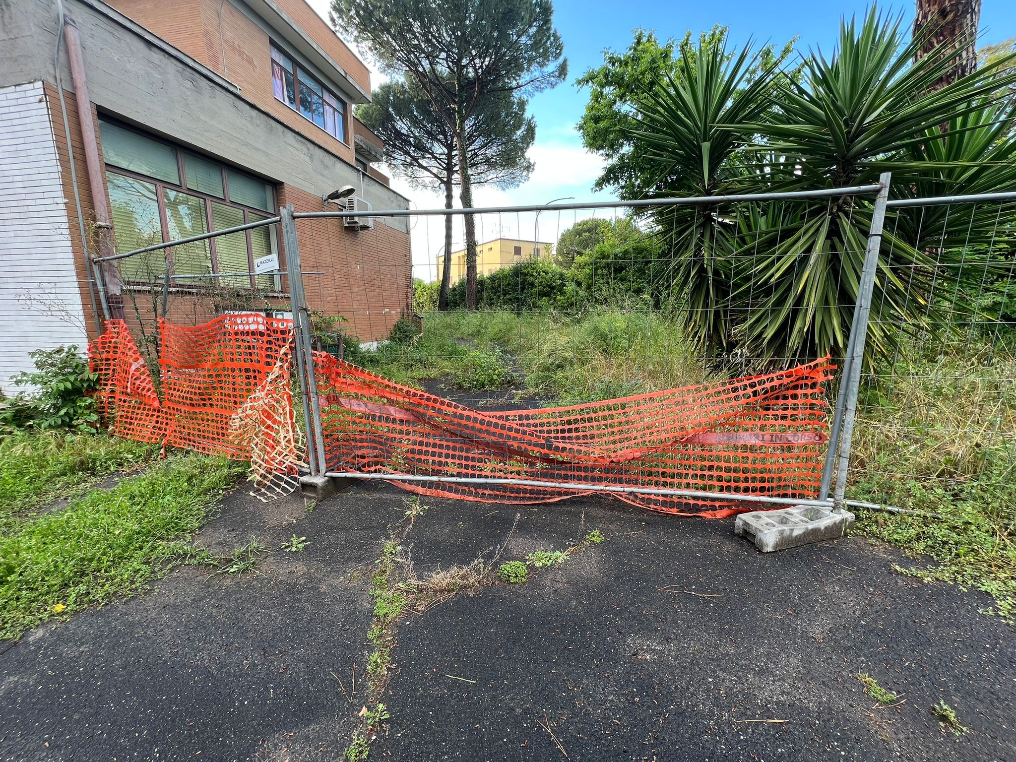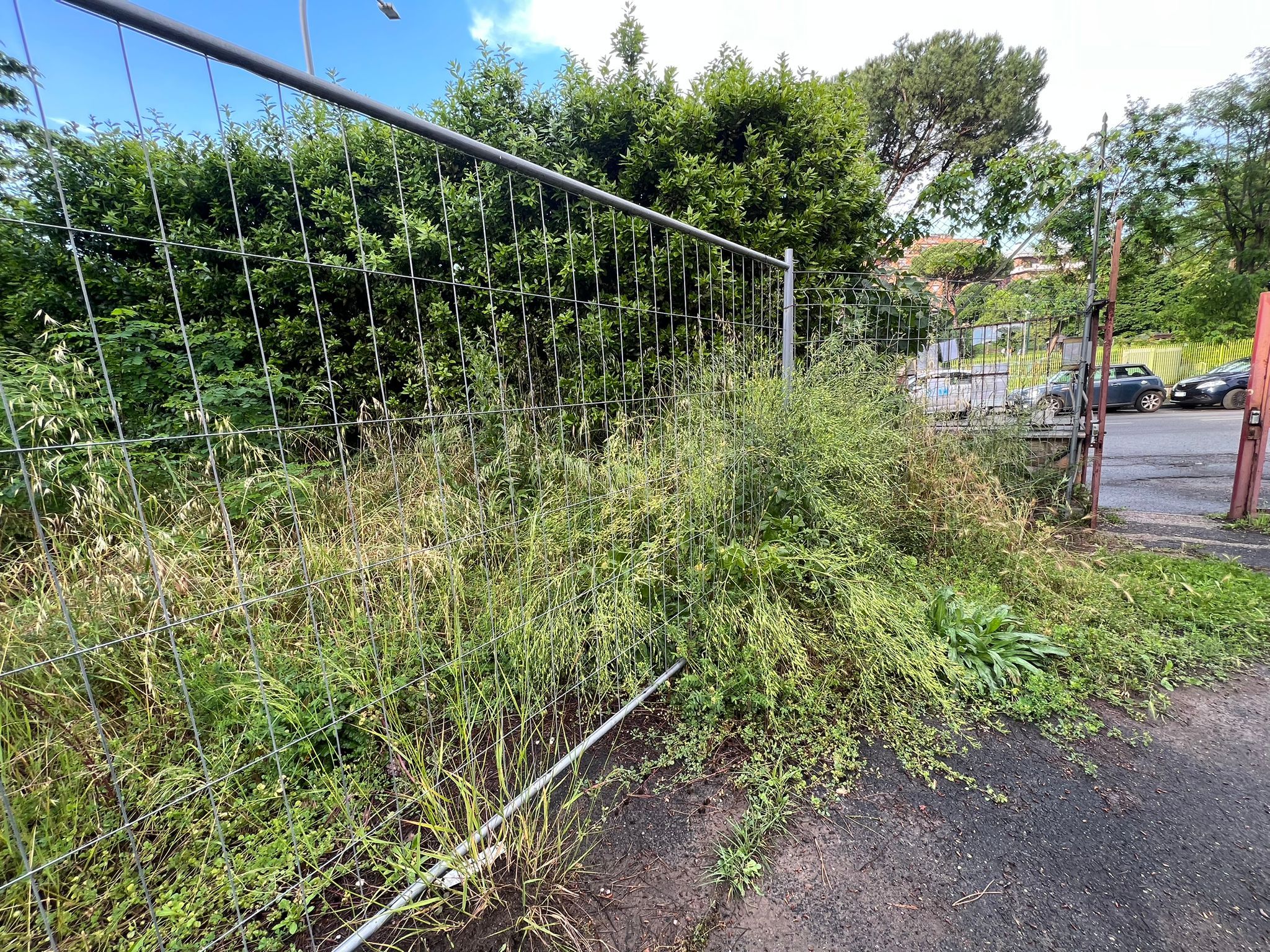 Tra le strutture che vengono segnalate in questo periodo, ci sono anche quelle del quadrante Talenti in III Municipio. Tra queste, emerge la drammatica situazione vissuta dal Liceo Artistico Donato Bramante, nella sede di via della Cecchina. Qui il cortile scolastico è diventato una selva fuori controllo, con le piante che hanno raggiunto i due metri di altezza. Erbe incolte che nascondo, come nel film “Jumanji”, delle profonde insidie: nonostante ci troviamo in una scuola capitolina, al suo interno possiamo trovare una discarica abusiva, contenente al suo interno vecchia segnaletica stradale verticale e addirittura scarti di materiali edili.