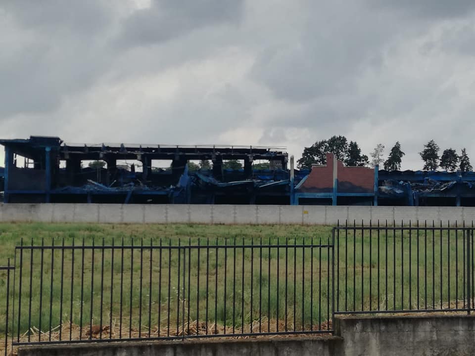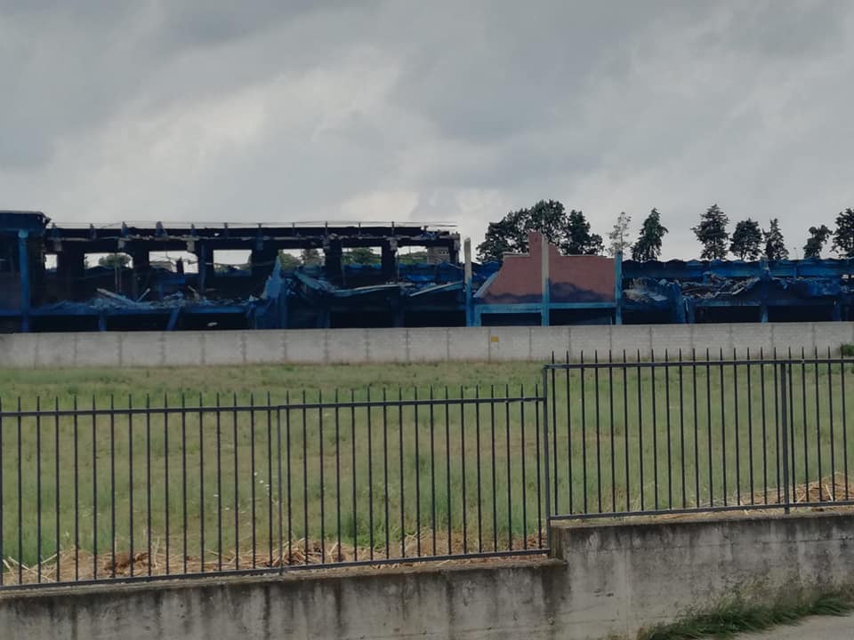 L’Eco X diventa blu. Dopo i lavori di messa in sicurezza, infatti, i resti dello stabilimento coinvolto nel tragico incendio di un anno fa appaiono di questo colore.