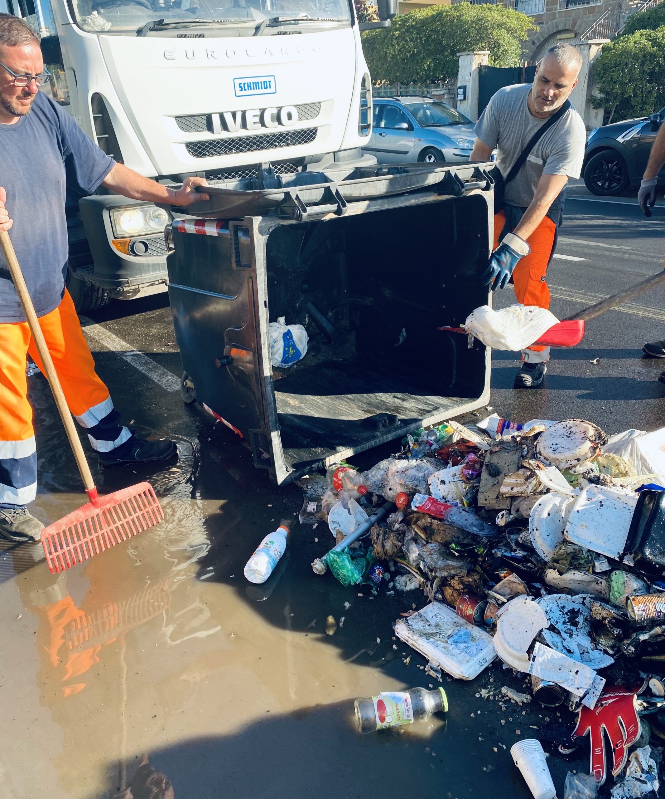 Ma, complice il caldo, i resti chiusi nella busta non si sono di certo spenti, anzi si sono alimentati. Questa mattina poco dopo le 7:00 il personale addetto alla raccolta rifiuti è passato con l’apposito camion dell’indifferenziata. Come sempre il cassonetto è stato svuotato all’interno del mezzo ma, pochi minuti dopo, le fiamme sono divampate.